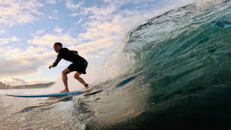 Monday morning: Bigger, cleaner, and better than yesterday. Katazume-san on the best waves of his life.