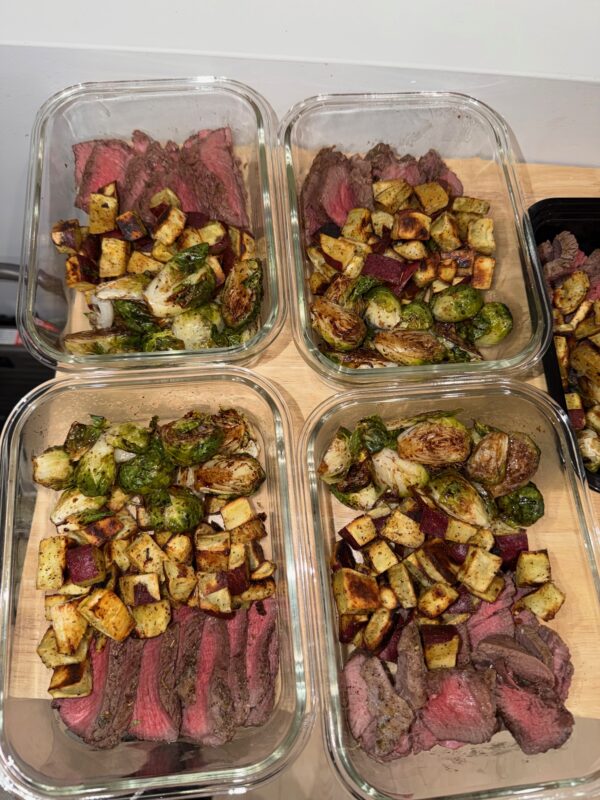 Another pre cooked meal. Tonight will be filet mignon with sweet potato and roasted brussel sprouts. Thank you to my new chef!