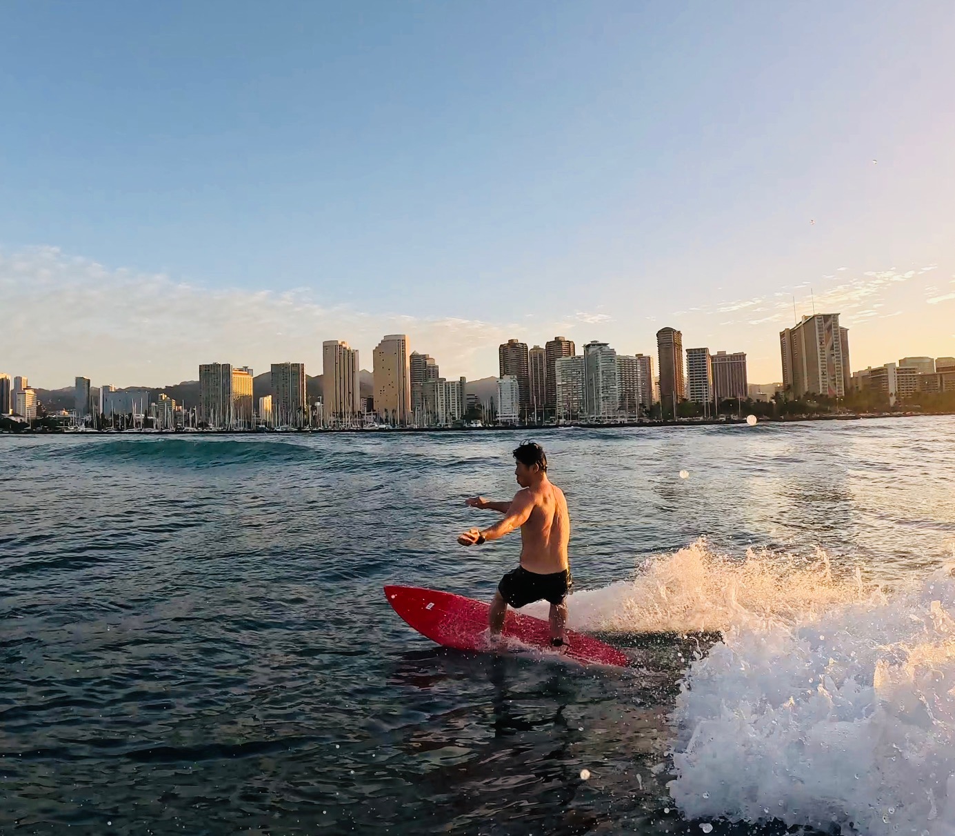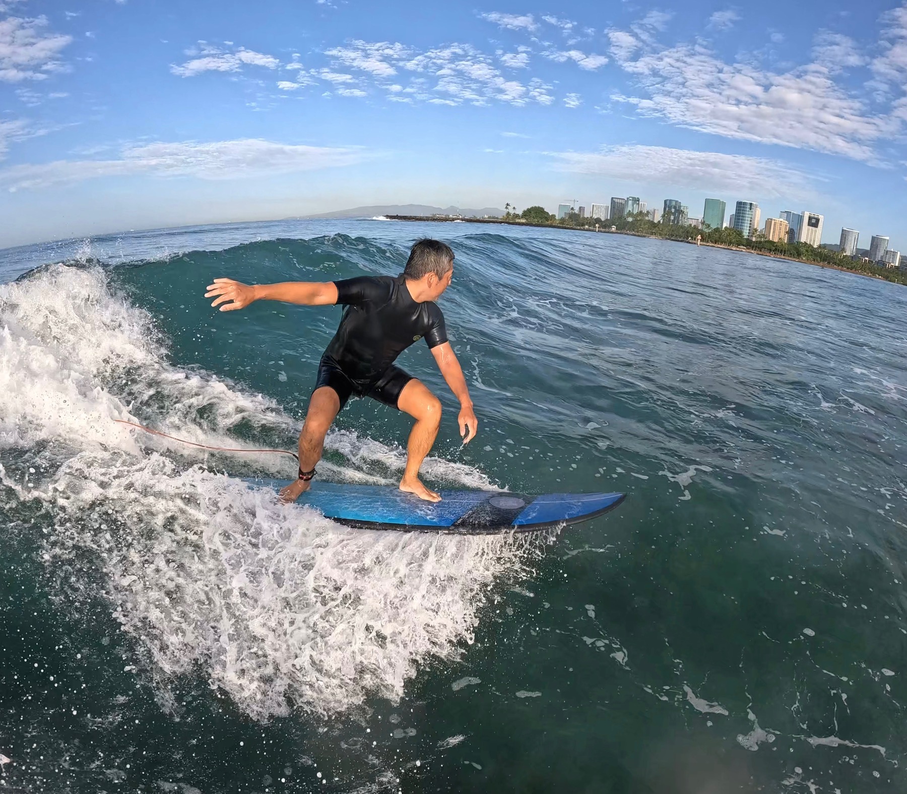 Yesterday at Bowls. Sunrise surfing with Nakahodo-san on the perfect right.