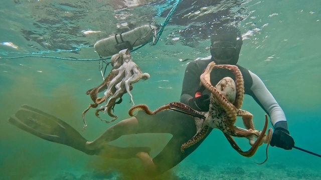 タコを見つけて凄くラッキーだったよ!本当に大きなタコがいたんだ。大きくて、攻撃的だった。僕は穴から出てくるこのタコをゲットしているMighty Mouseを見ていたんだ。