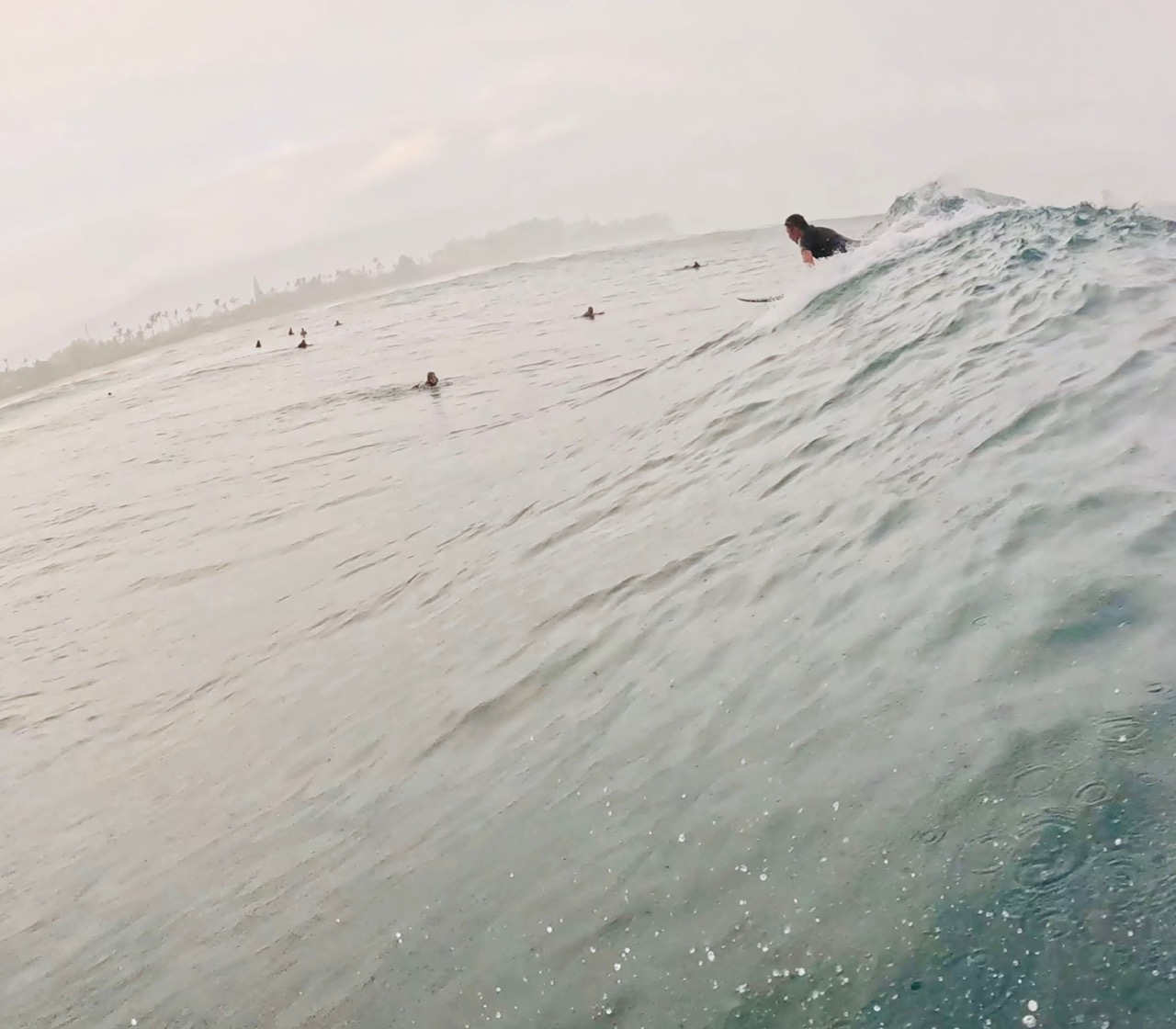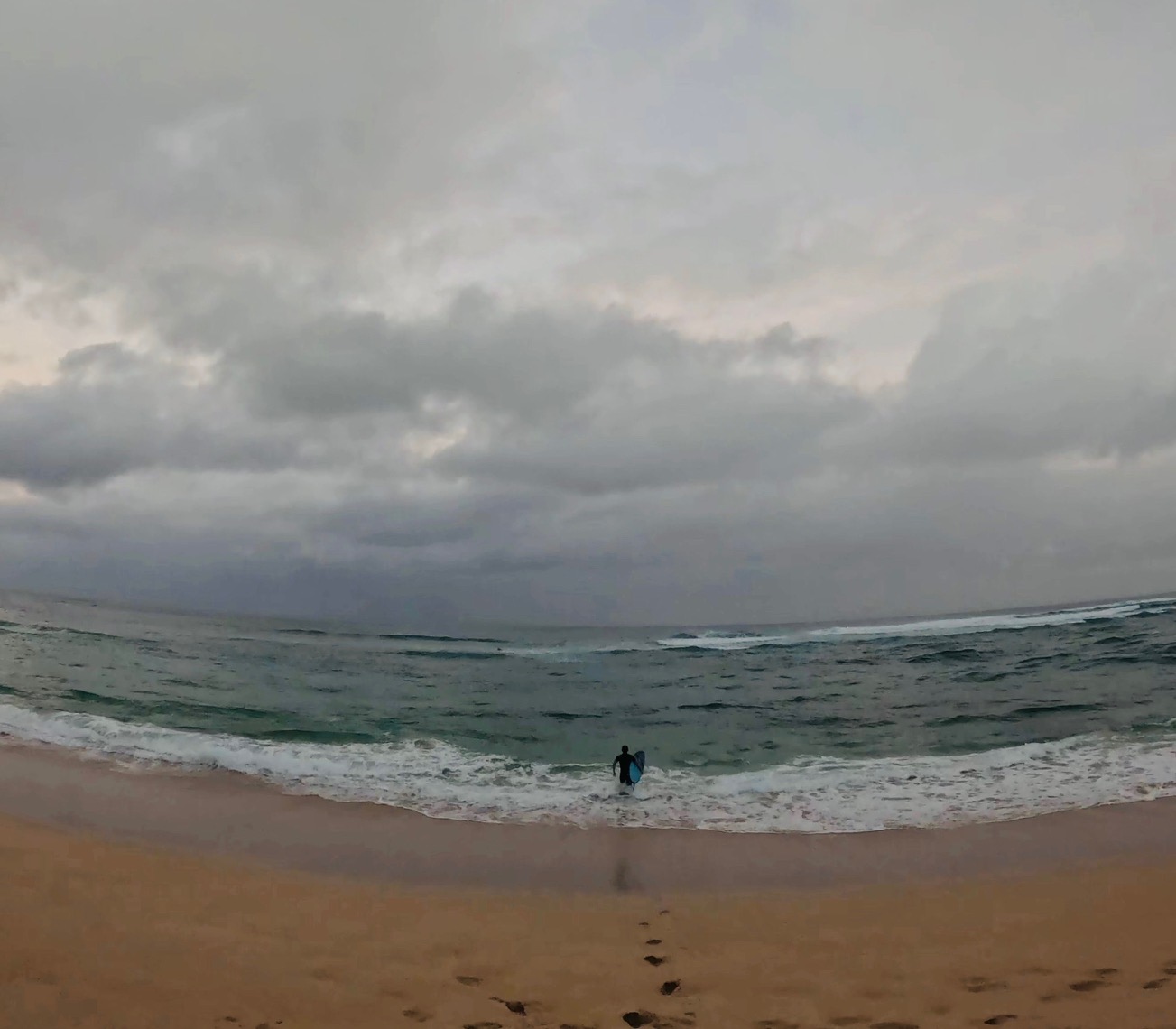 Round 1: Dawn patrol North shore. North swell with trade winds. Nakahodo-san heading out.