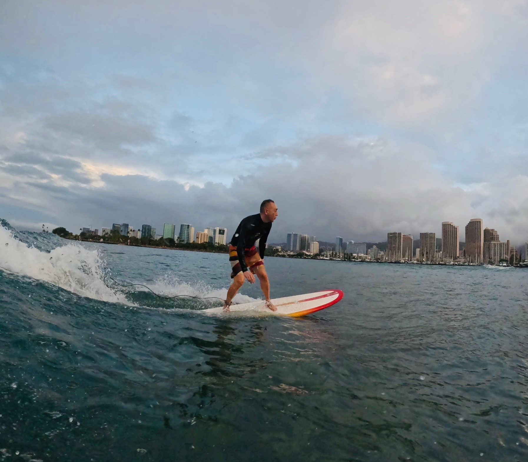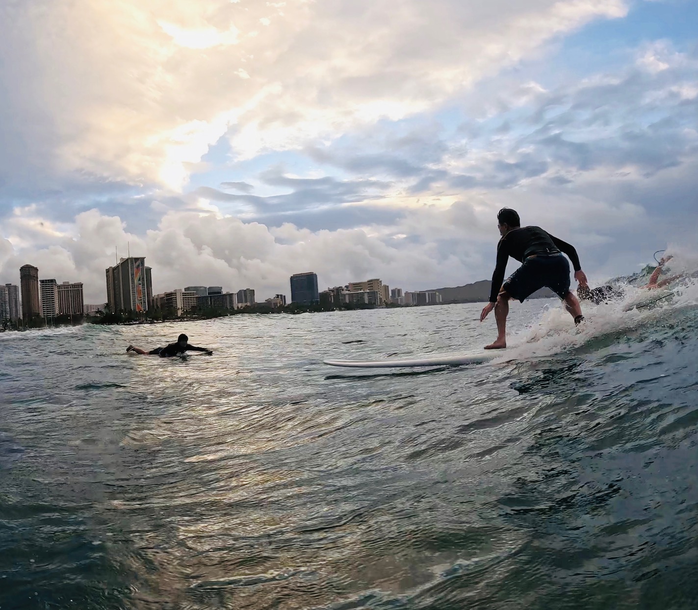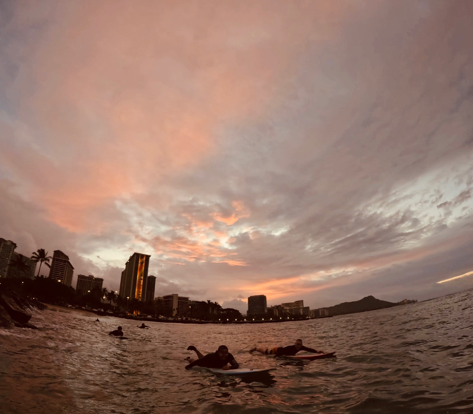 波としては思っていたよりも凄く良かったよ。僕は波がフラットになると思っていたんだ。だから実際に車の中に水中マスクとシュノーケルを積んでいたんだ。もしフラットだったら、僕はワイメアベイの水中で50ポンドの岩を持って走るためにRoyを連れて行くつもりだったんだ。でも波は良かった。そして僕たちはサーファーだからサーフィンをしたよ!