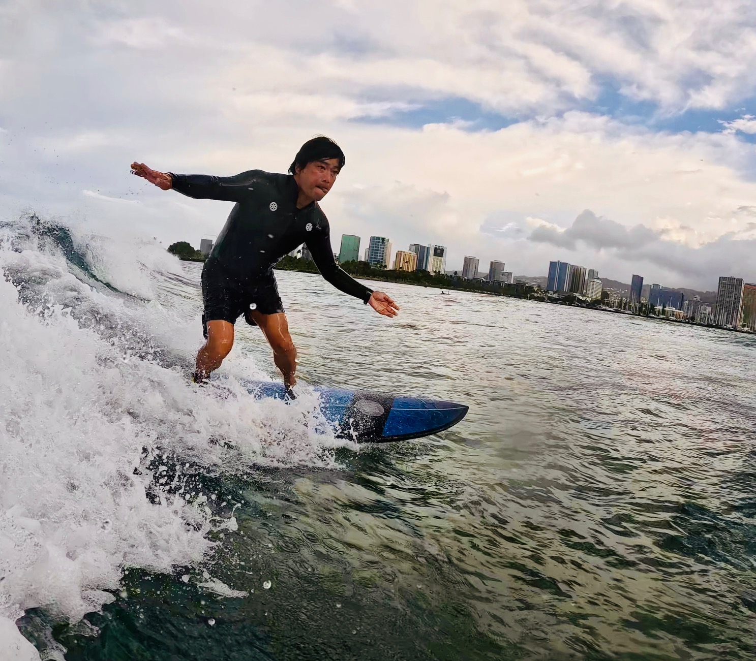 Royは四国出身だから、凄くメローなんだ。とても謙虚で静かなんだ。一度彼が波をキャッチすると驚かされるようなタイプのサーファーなんだ。僕は彼のサーフィンレベルに凄く感動したよ。