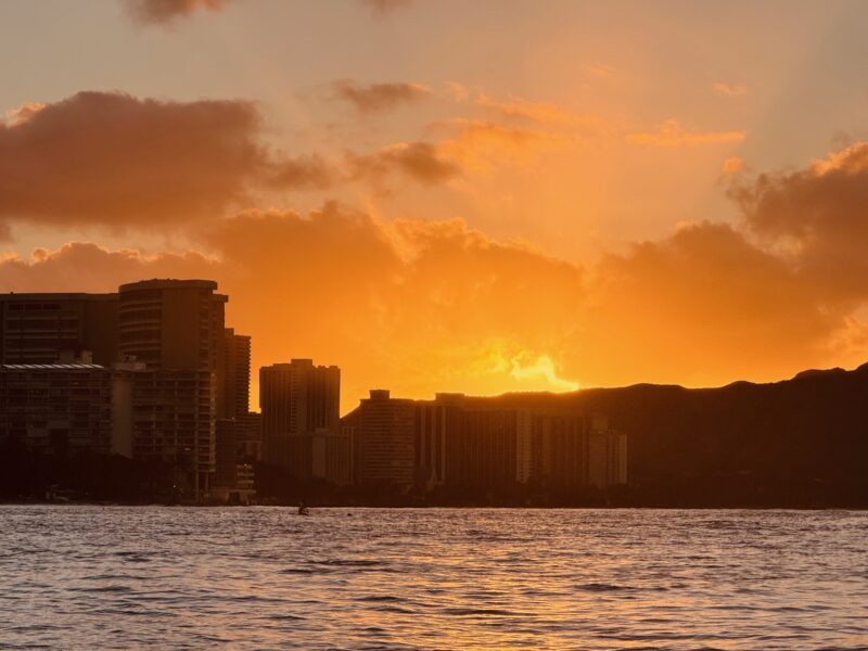 Round 1: Sunrise, clam conditions, and small clean waves.