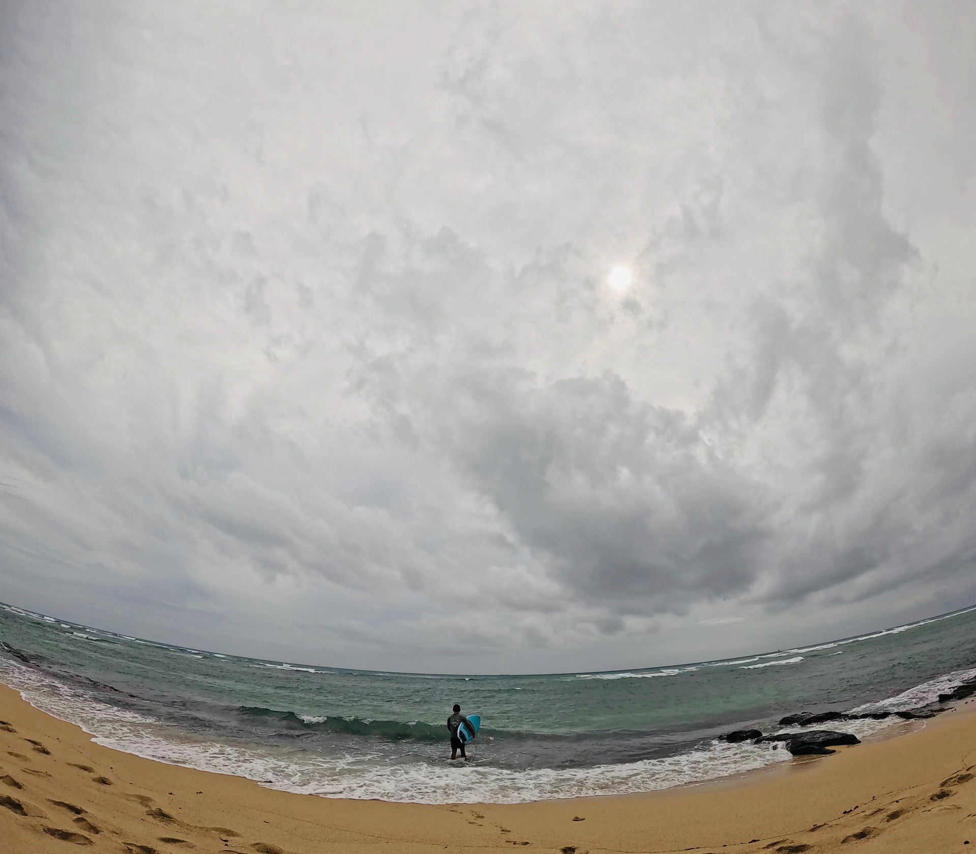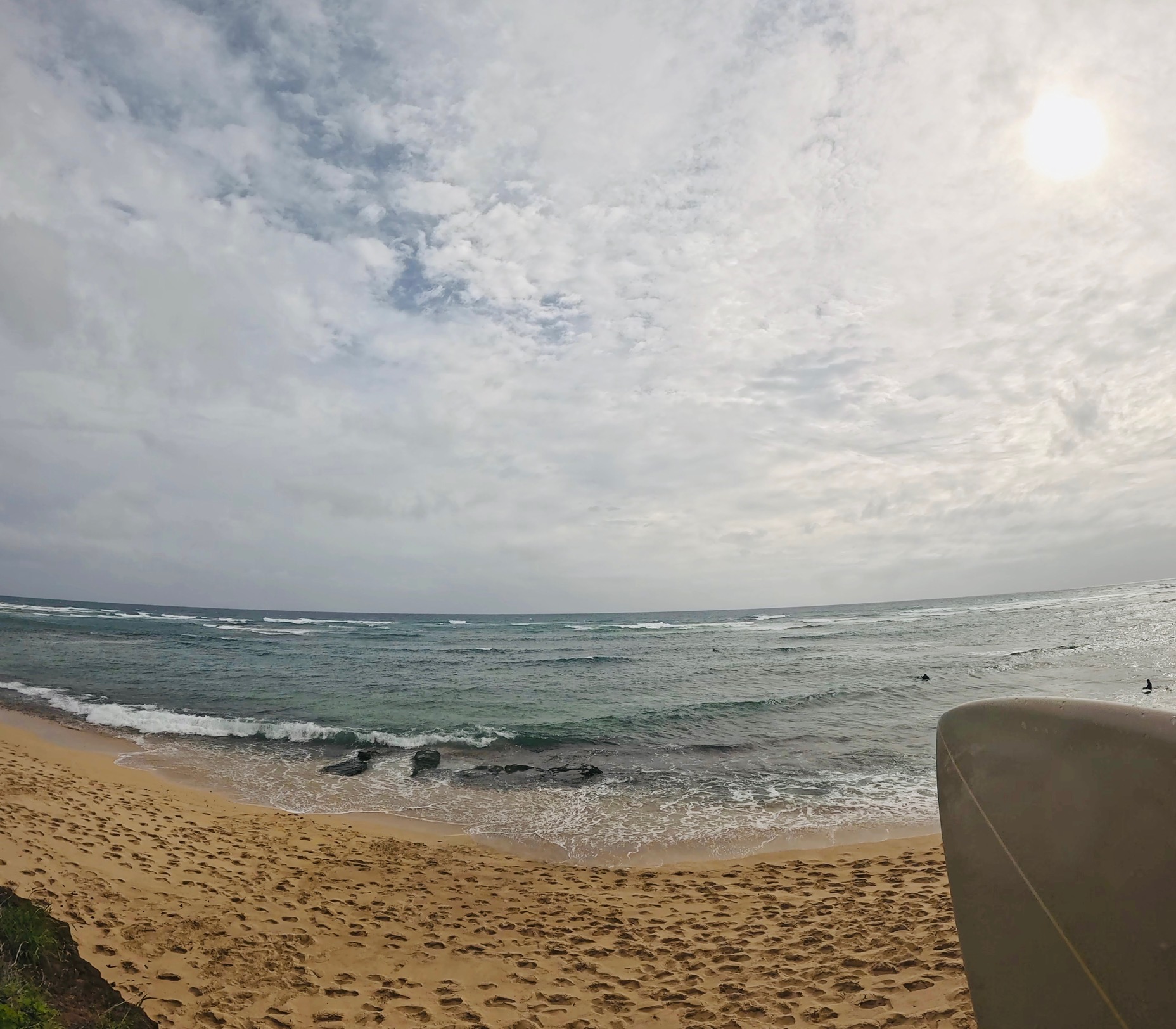 太陽さん、こんにちは!久しぶりだね。今朝はナイスなサンライズで沢山虹が出ていたよ。それに波も良かったんだ!