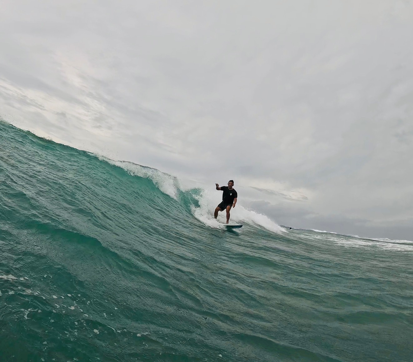 まだ暗い中僕たちはパドルアウトして、良い波に遭遇してびっくりしたんだ。先週、ボウルズは毎日フラットだったから、それは僕たちだけのチェストハイの波や良いコンディションで良かったよ。