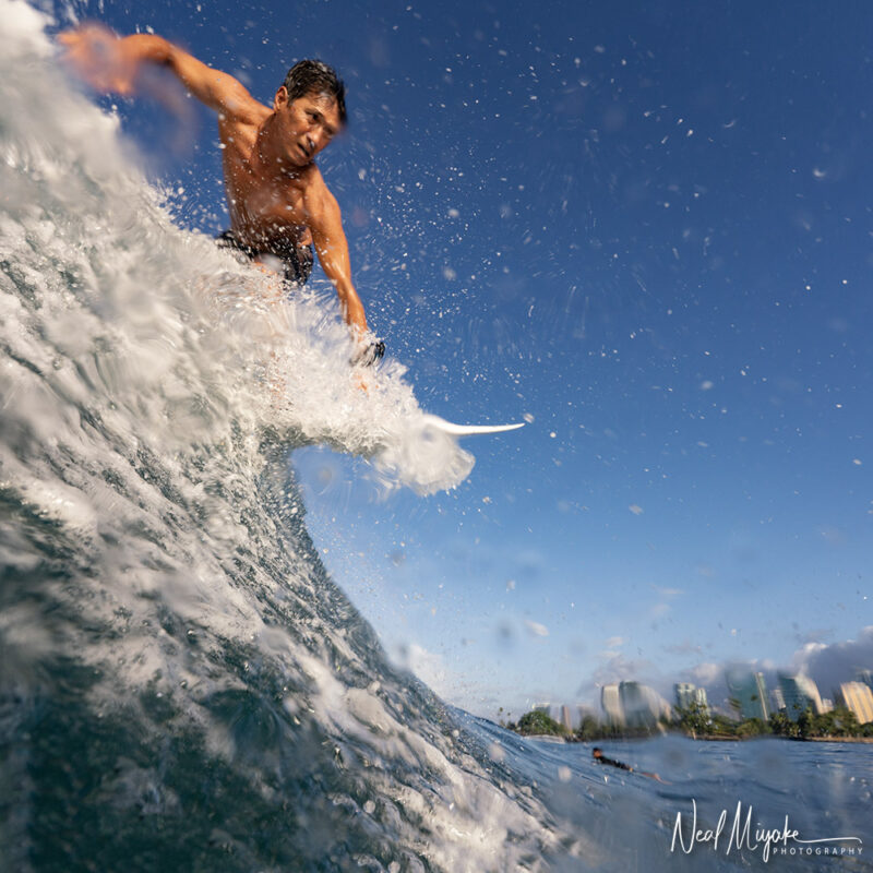 ハワイで生まれ育ち、プロサーファー、フォイラー、スキンダイバー、カメラマンの肩書きを持ち、ウォーターマンとして、海で多くの時間を過ごし、海から多くのモノをもらいながら生活しています。彼が伝えようとしていることは、海がある生活は僕らを豊かにしてくれるということ。そして、自分だけではなく、いろいろなことをみんなにシェアし、人生を楽しむということ。現在は、ハワイでプライベートサーフィンガイドを主催。