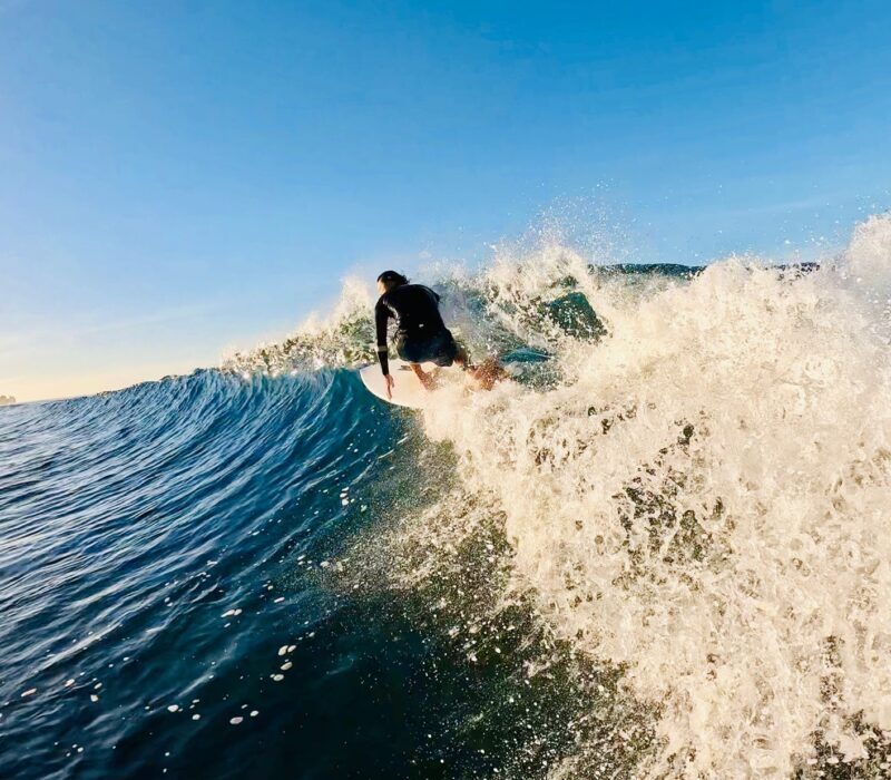 ここ最近ライトな風が吹いているので、ダイヤモンドヘッドはビューティフルなんだ。毎日ヘッドハイの波で凄くロングライドできるよ。冬がやって来たから、ここはクリーンな日がもっともっと増えるんじゃないかな。