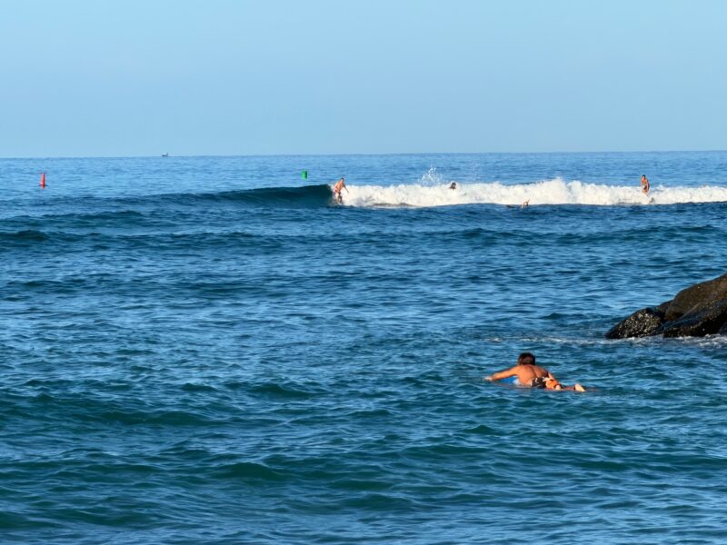 これから5ヶ月間、アラモアナでは楽しめる波になるだろうね。ビッグではなく、まだ本当に楽しめる波だ。たまにオーバーヘッドのスウェルになるけど、間に楽しむんだ。