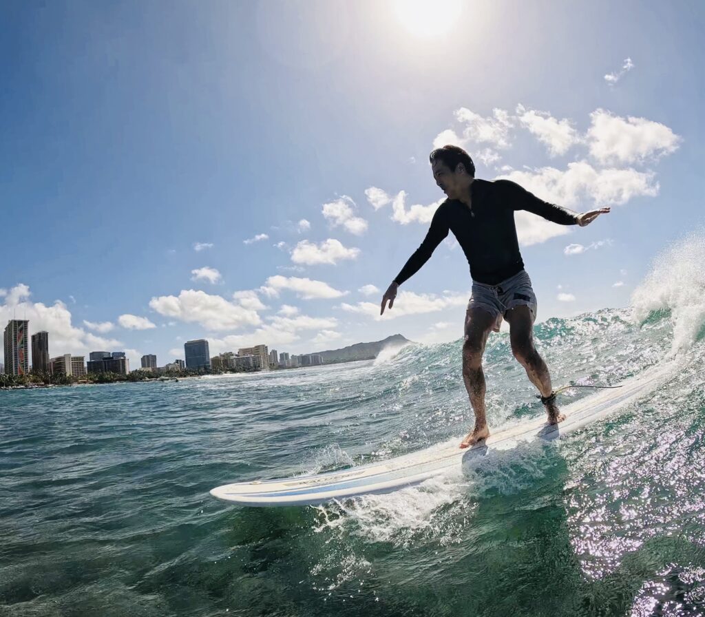 ハワイで生まれ育ち、プロサーファー、フォイラー、スキンダイバー、カメラマンの肩書きを持ち、ウォーターマンとして、海で多くの時間を過ごし、海から多くのモノをもらいながら生活しています。彼が伝えようとしていることは、海がある生活は僕らを豊かにしてくれるということ。そして、自分だけではなく、いろいろなことをみんなにシェアし、人生を楽しむということ。現在は、ハワイでプライベートサーフィンガイドを主催。