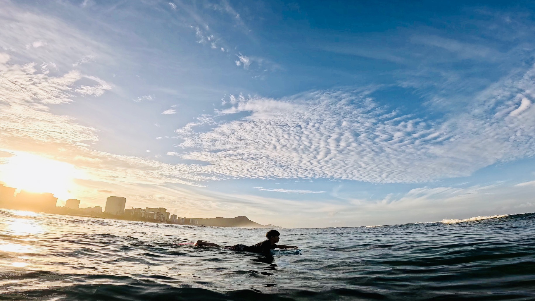 Another perfect morning at Ala Moana. Waves shoulder high and good again. The early morning paddle out.