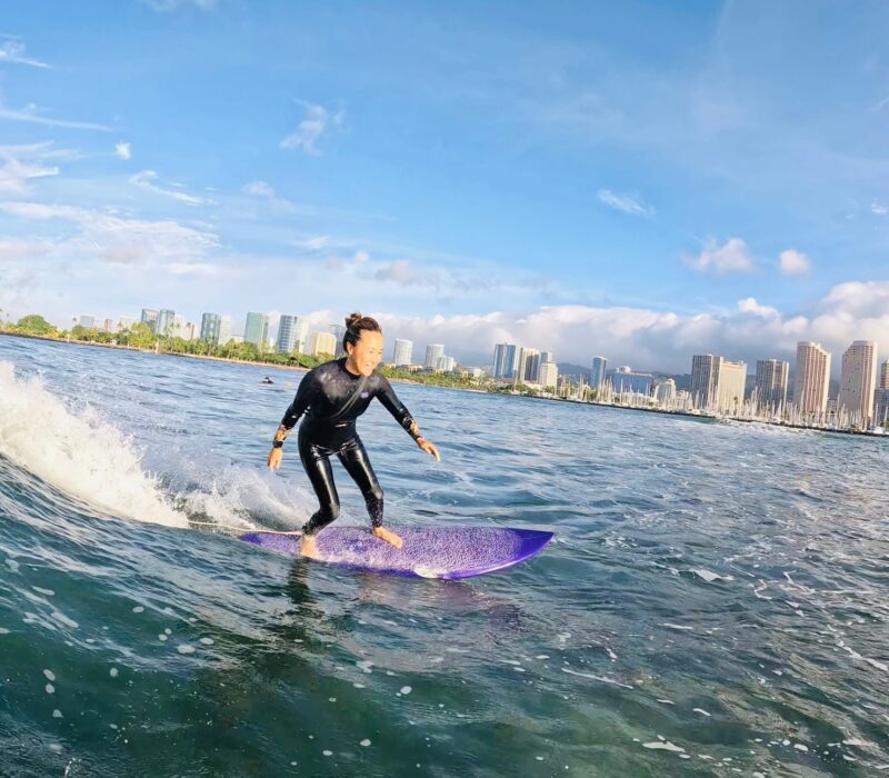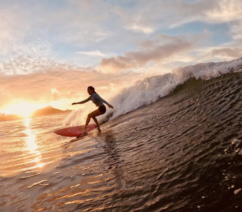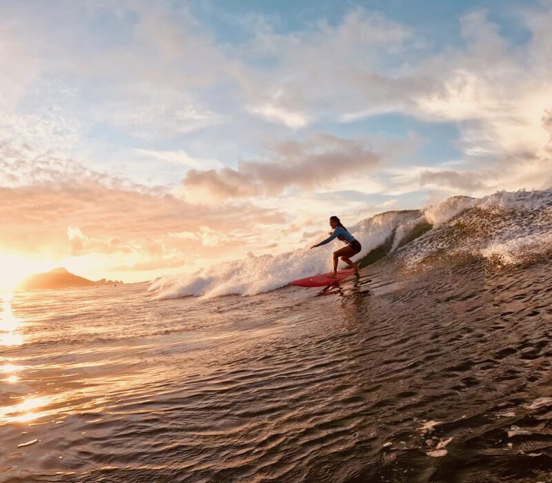 Rocky’s been riding a totally different surfboard everyday, which is hard to do. But on her first wave of each session, she knows how to connect.