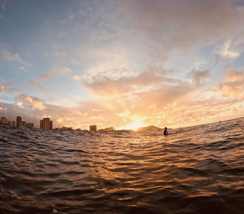 A beautiful Tuesday morning at Ala Moana. Nice wintery sunrise, cool trade winds, and good waves.