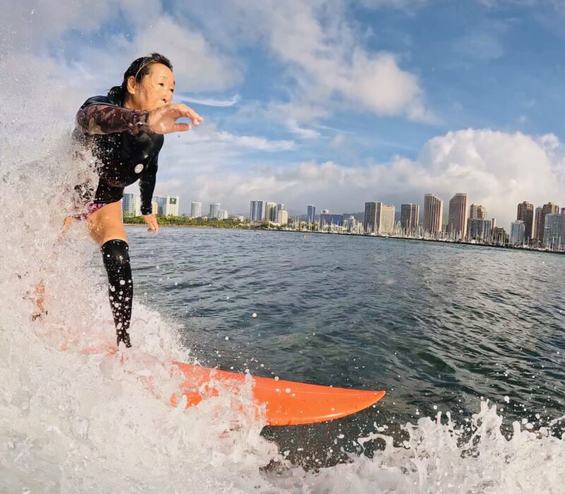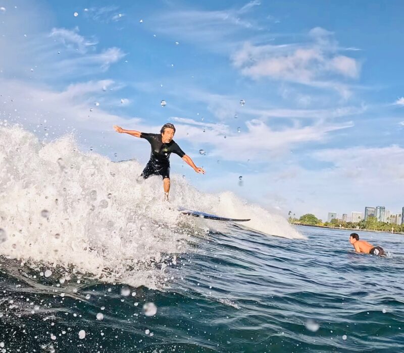 Tokura-san is surfing better and better. He’s always the oldest surfer in the water, and always the happiest surfer in the water.