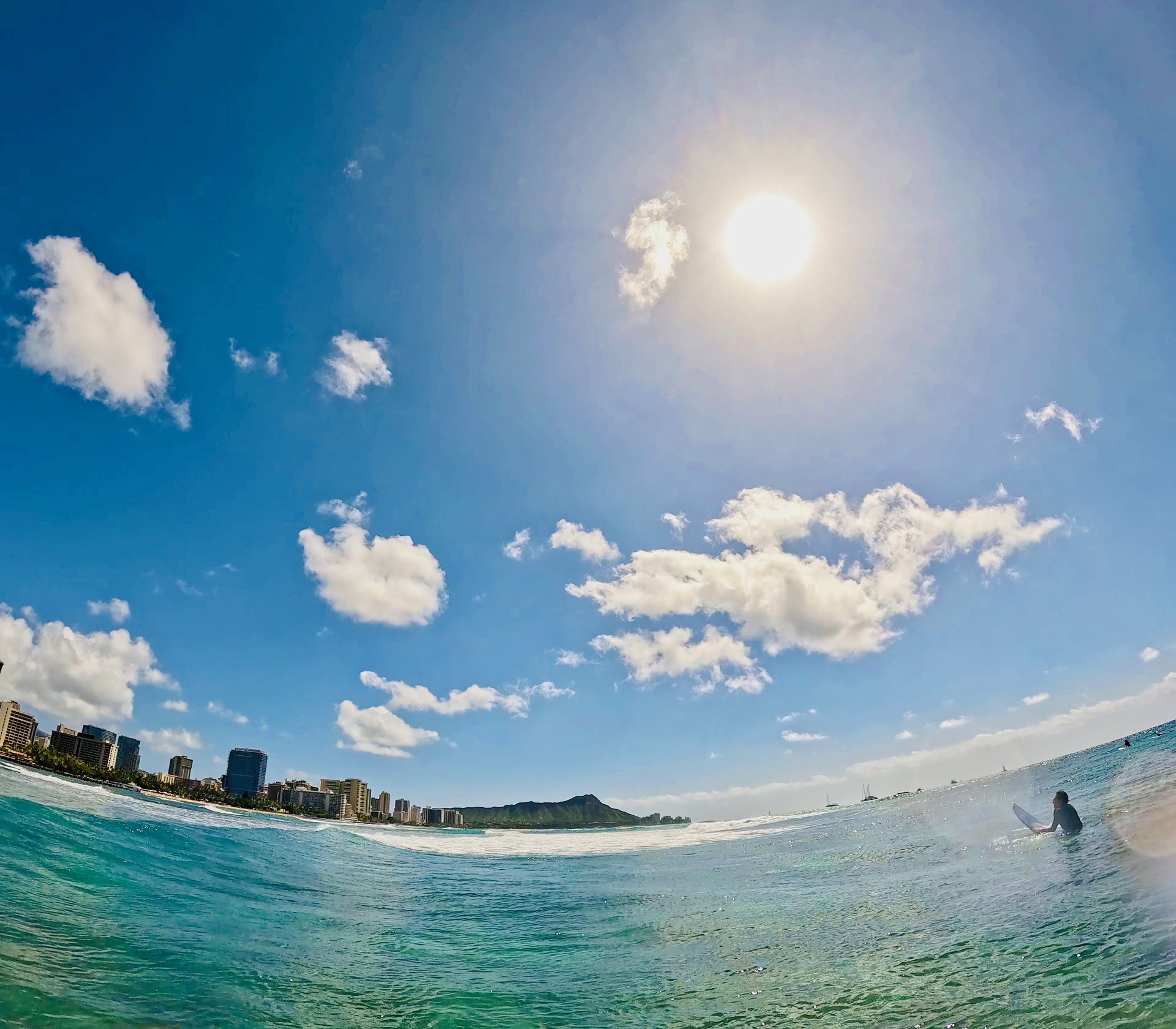 Look how clean the water is. And look how happy Kinoshita-san is. This is what you call “stoked.”