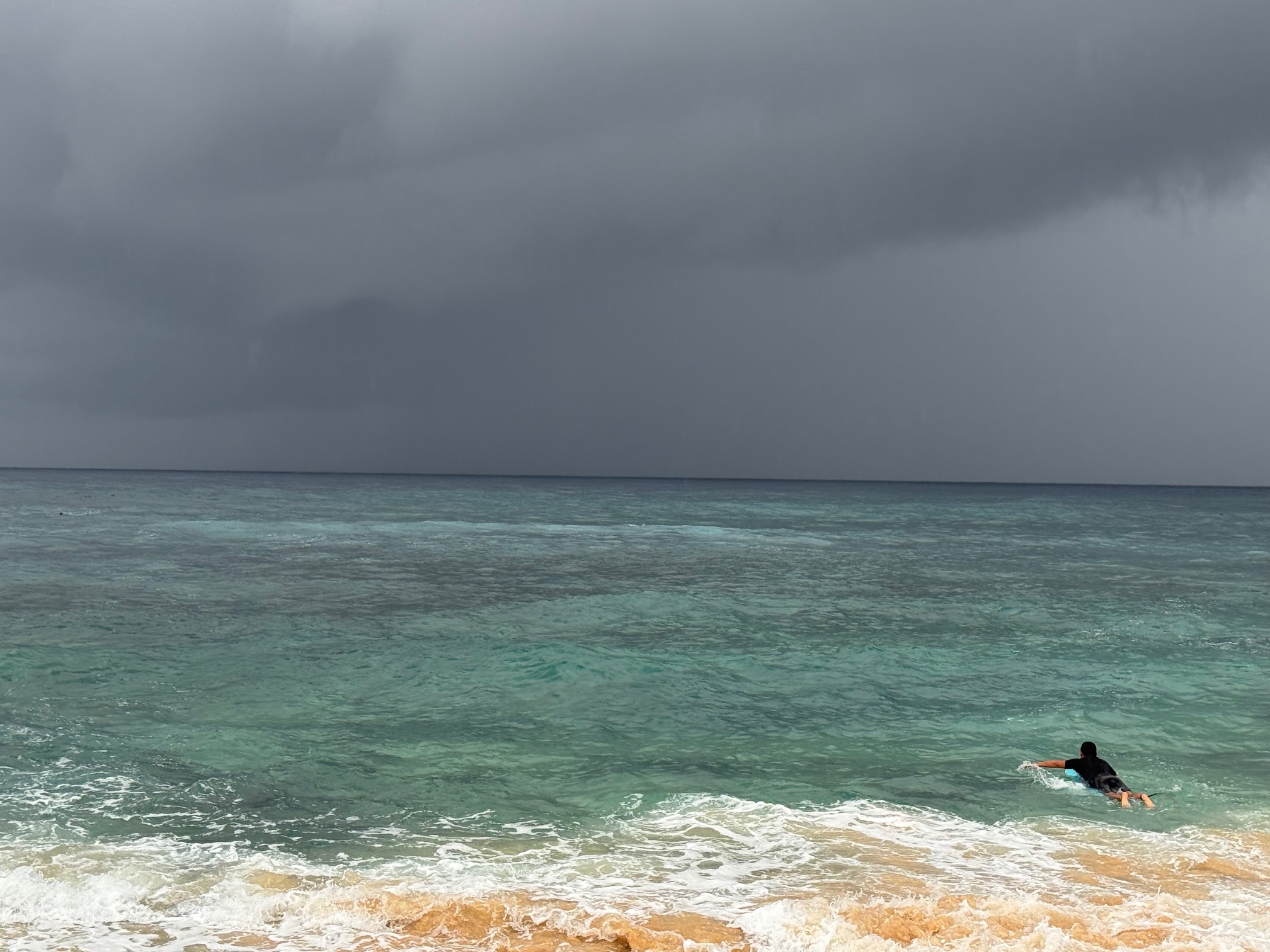 This morning we drove around for 2 hours looking for waves. We were looking for something exciting and we got more than that. Right as we paddled out, the big storm hit. Not even 5 minutes into our session, everything turned black.