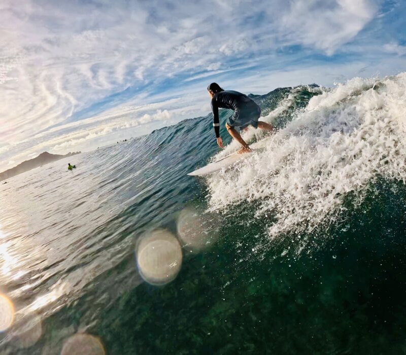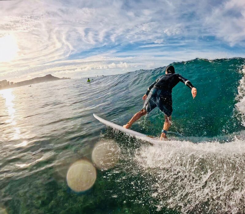 ハワイで生まれ育ち、プロサーファー、フォイラー、スキンダイバー、カメラマンの肩書きを持ち、ウォーターマンとして、海で多くの時間を過ごし、海から多くのモノをもらいながら生活しています。彼が伝えようとしていることは、海がある生活は僕らを豊かにしてくれるということ。そして、自分だけではなく、いろいろなことをみんなにシェアし、人生を楽しむということ。現在は、ハワイでプライベートサーフィンガイドを主催。