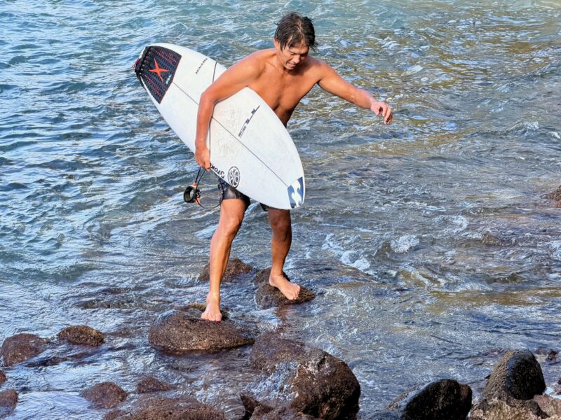 When I first paddled out on it, it felt like a toothpick. It was very narrow and thin that I had a hard time balancing on it. But once I took off on my first wave, it felt like magic. Very sensitive and very responsive. I felt like a teenager again!