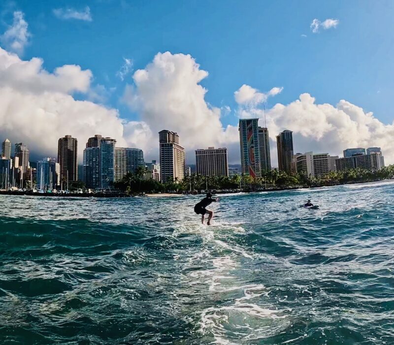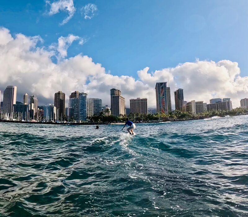 Round 1: First time surf, first time Hawaii, and first time flying on the water! Go Tang-san!