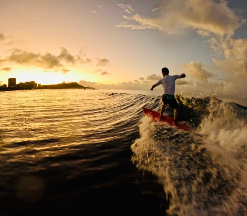 Round 1: Dawn patrol in the dark again. Waist high waves with perfect glassy conditions.
