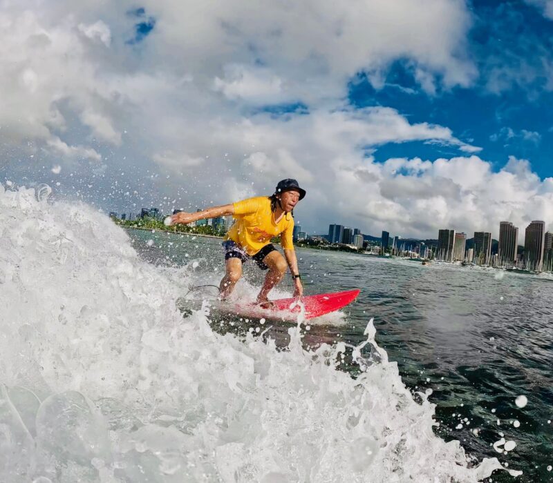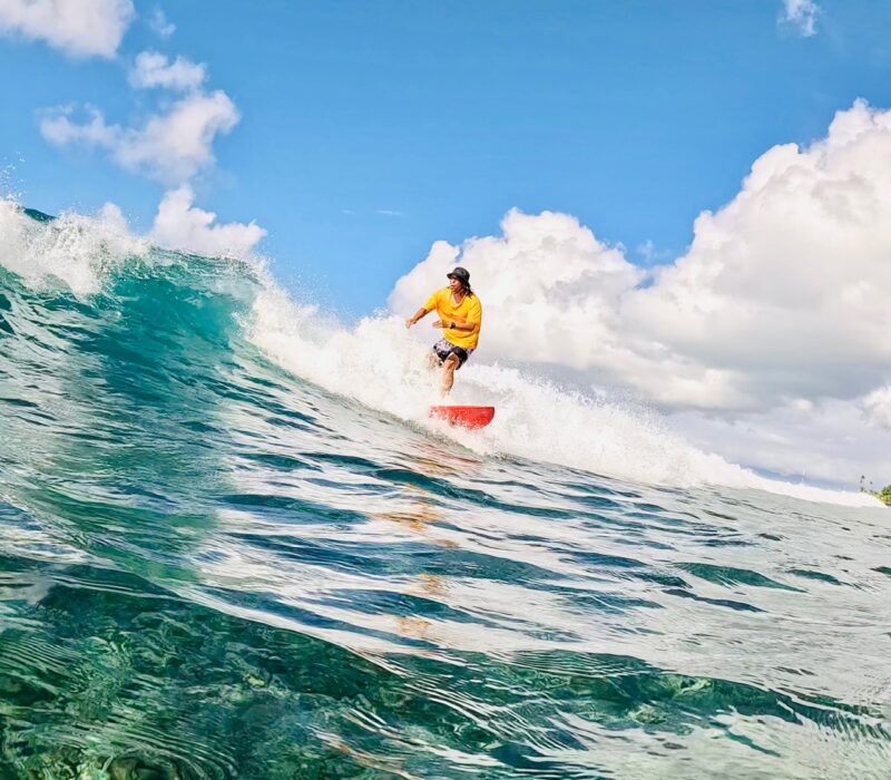 Surfing with Oku-san after our last meeting 6 years ago. So good to see him again so happy and healthy.