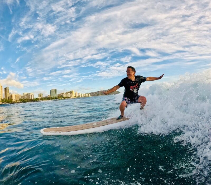 This is a proven fact that muscle memory lasts forever. If you haven’t surfed for 40 years and can just pop up and surf like this, your muscles didn’t forget how fun this sport was. I was riding on the side and I could see and hear the joy of this legend surfer!