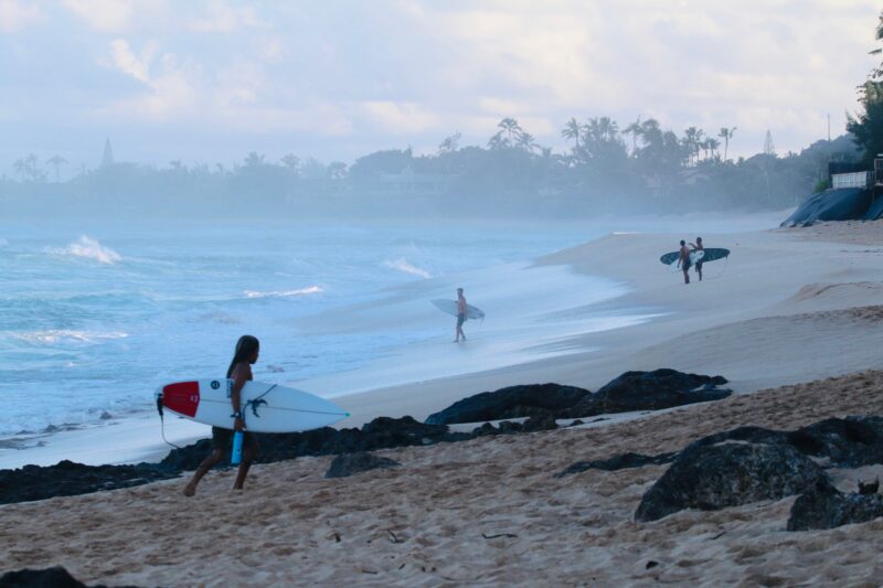 I drove out super early this morning to the North shore. I knew the waves were coming up super fast so it was hard to chose a spot. I decided on Rocky Point because it was going to be the biggest and most consistent. I wanted to catch a lot of waves so this was the best spot for that. Everything went good, surfed some good ones, then it went wrong. The waves got too big and the current was super strong. As I was coming to the shore, all the water sucked out from under me and I was rolling on the sharp rocks. Then the next waves came and smashed me. It could have been very bad but luckily the ocean pushed me up the beach after.