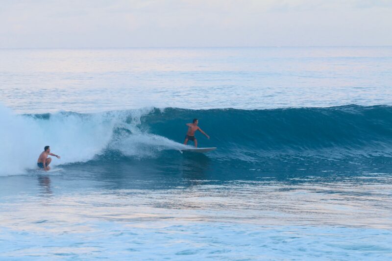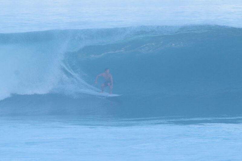 It’s dark, it’s early, and only 7 guys out. I rode my 5’11 shortboard so it was a little challenging catching waves. The current was super strong and the waves were very thick. It’s times like this where you have to 100% commit yourself. I’ll never pull back so I’m either going to succeed, or fail.