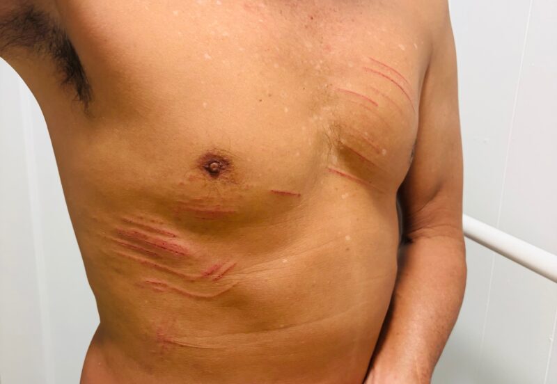 The waves were so good and I was planning to surf Backdoor after this. I rode this last wave in to the shore, then right before I jumped off my board, all the water in the ocean disappeared. I was rolling on the dry reef on my stomach. The ocean pulling me back as I was stuck and I saw the whole ocean coming back right for me. Then I got smashed!