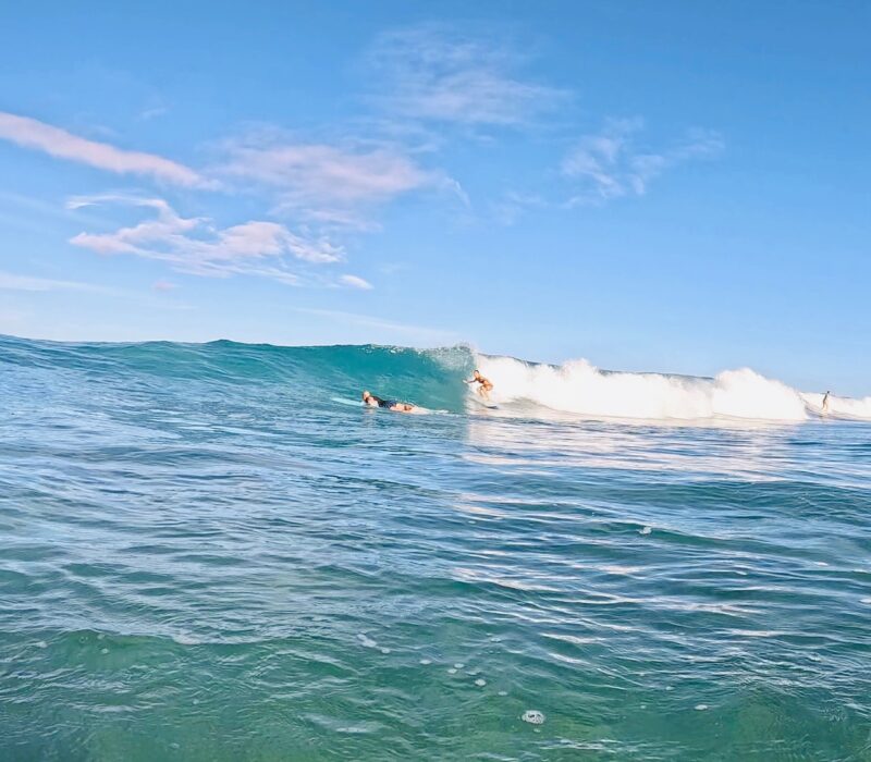 Laniakea way overhead and good conditions.  Mighty Mouse taking off on a set!