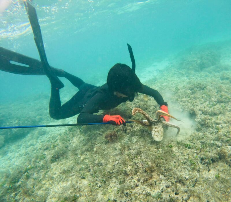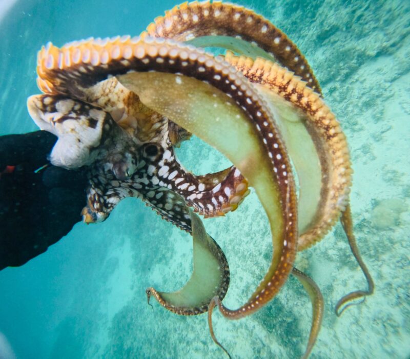 We were so lucky to find octopus! There were some really big ones. Big and aggressive. I was watching Mighty Mouse getting this one out of the hole.