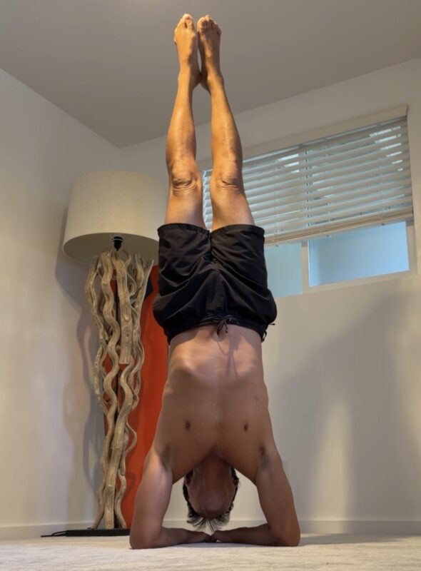 I needed a 1 day break from the ocean so I decided to stay indoors. I still woke up at 3:30am but instead of going surfing, I spent more time on my daily routines. After exercising, stretching, and yoga, I end it with this “Pincha Mayurasana” pose. I can feel the blood rushing from my legs to my head. It feels so good! I didn’t miss a day of this the past 7 years and I plan to continue to do it everyday as long as I’m alive.