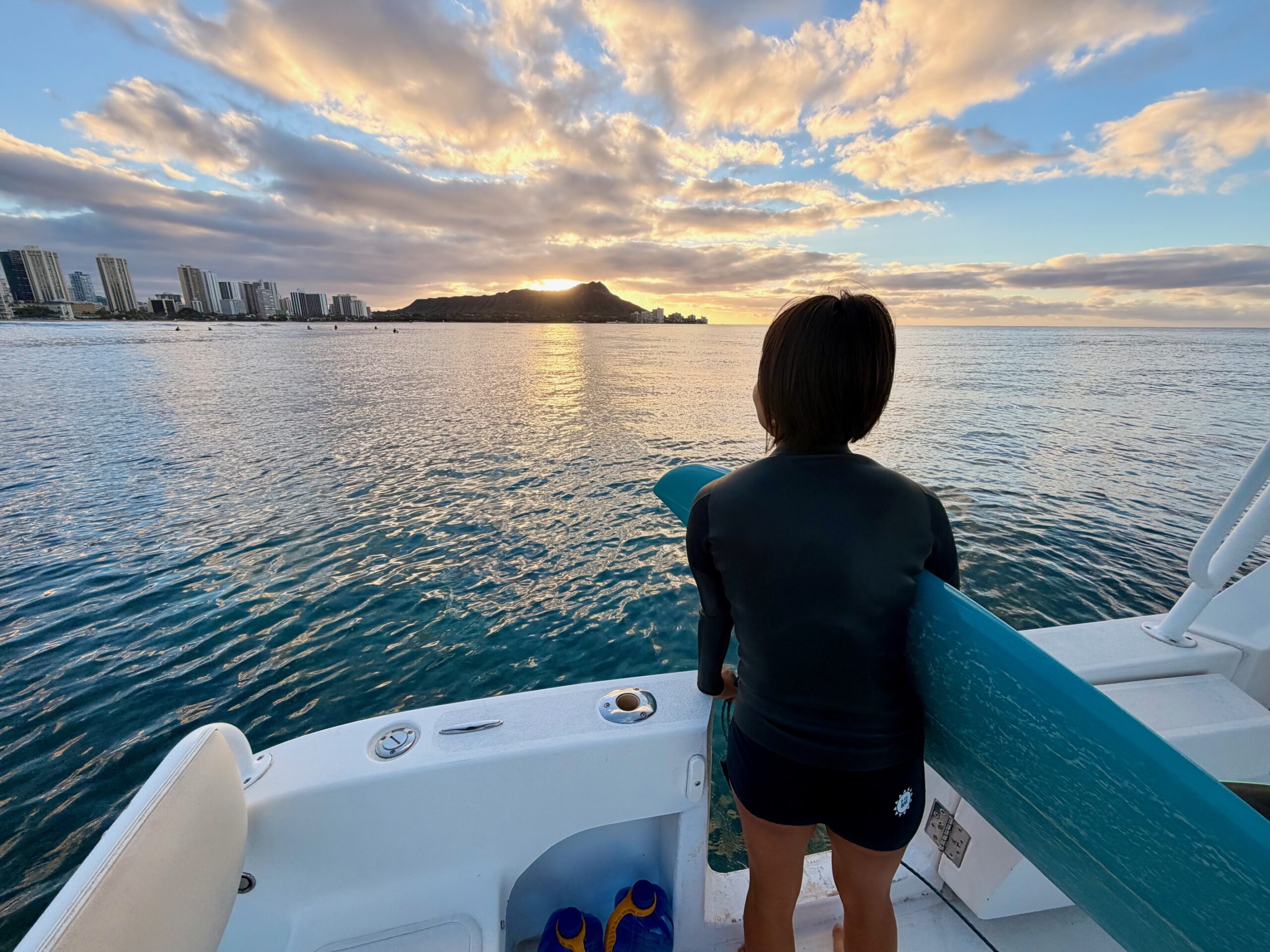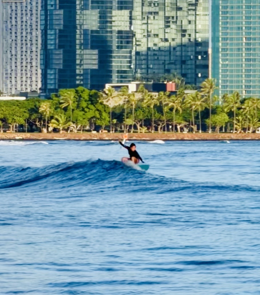 After all the days of practice on challenging waves, today was almost too easy for her. Waikiki was like a wave pool. So perfect and so easy.