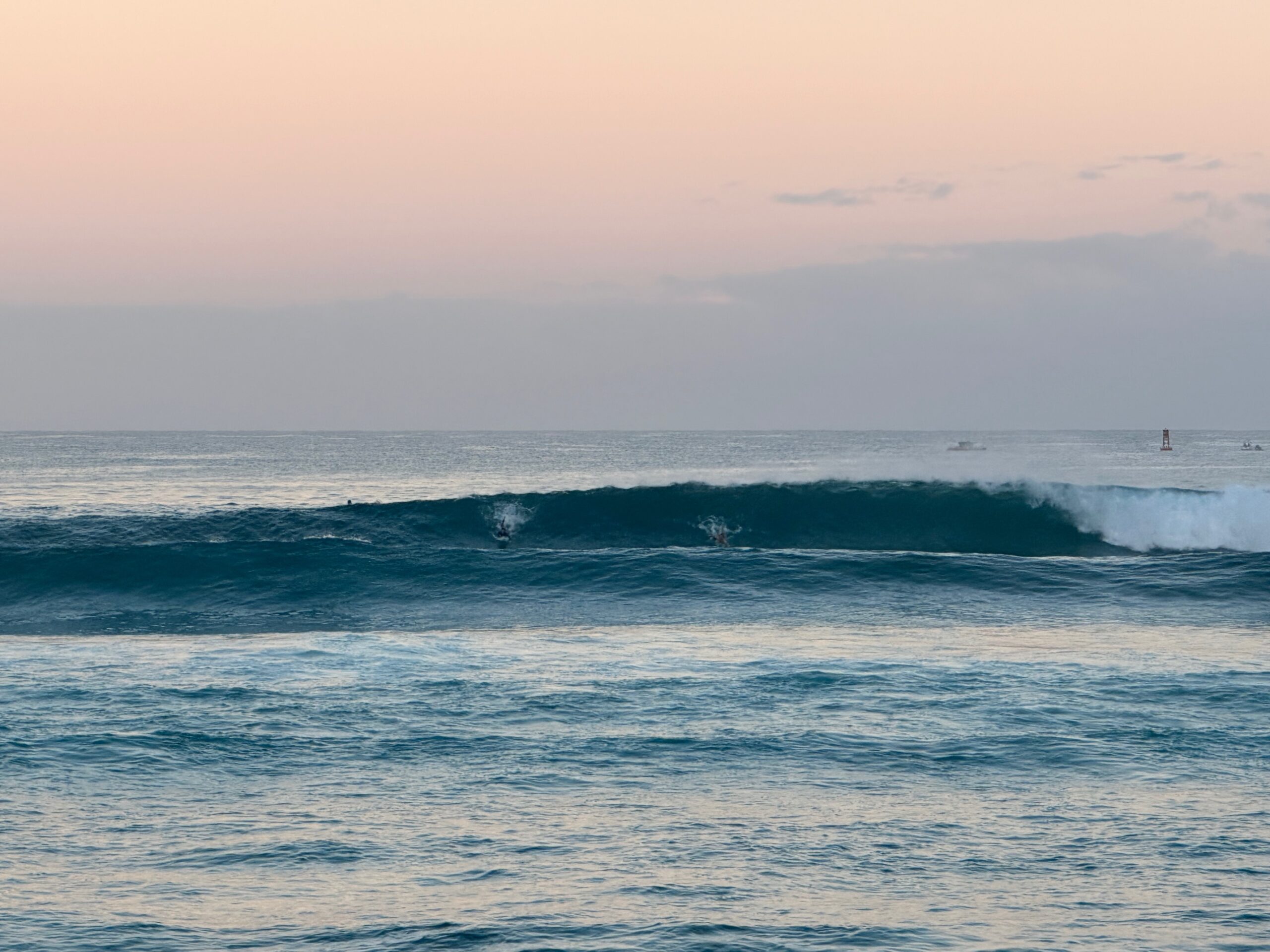 We drove out to the North shore early this morning. I knew the waves were going to be pretty big but I didn’t say anything until we were almost there. We checked Haleiwa first and after I saw this set, I knew that somewhere was going to be really good. But I didn’t know if Mighty Mouse would be able to make it out. The waves were really clean but the ocean was still a little wild. From the beach, it looked very dangerous.