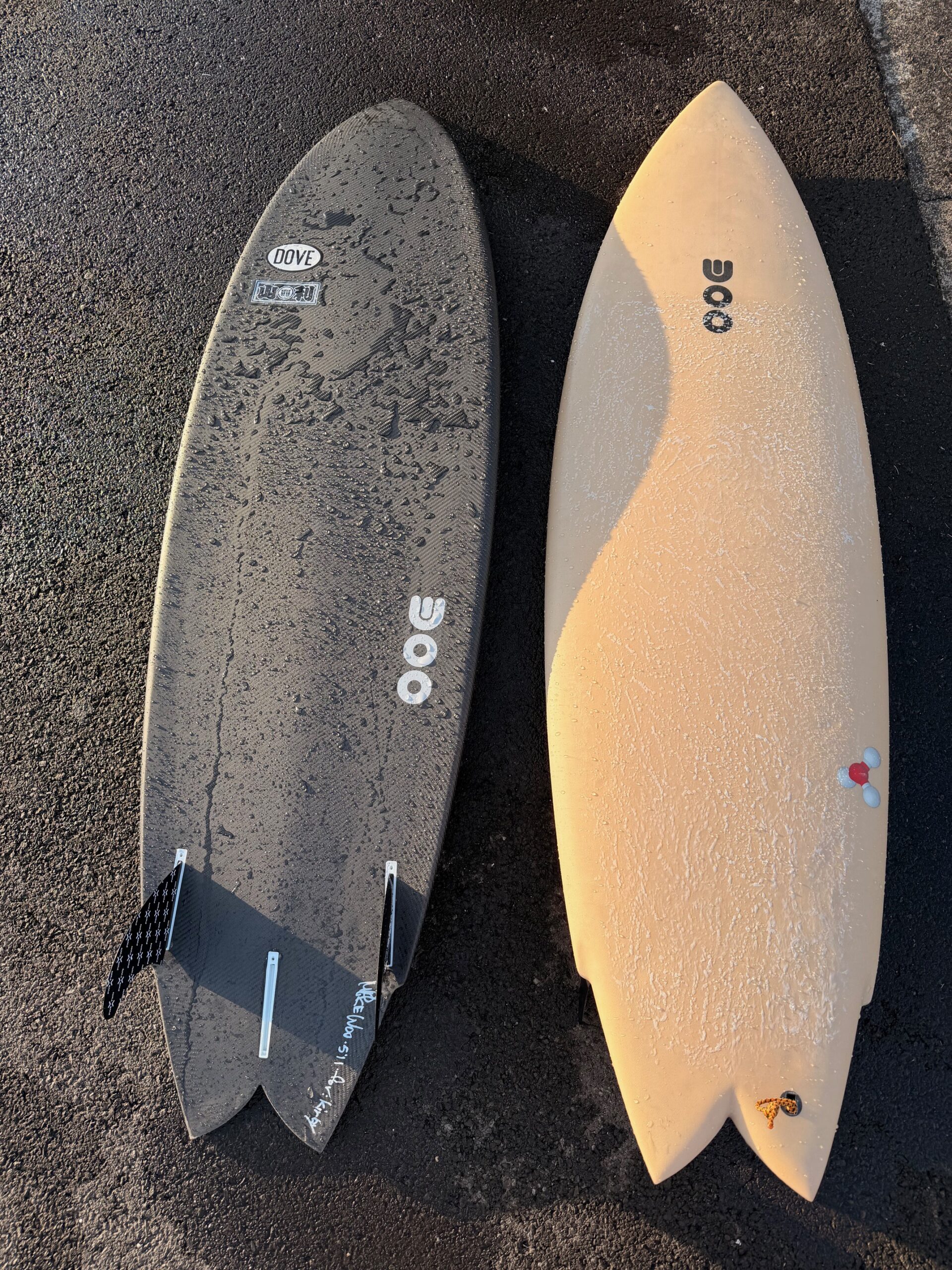 Round 1: The perfect day for testing out the Mike Woo Great White twin fins. Both so fast!