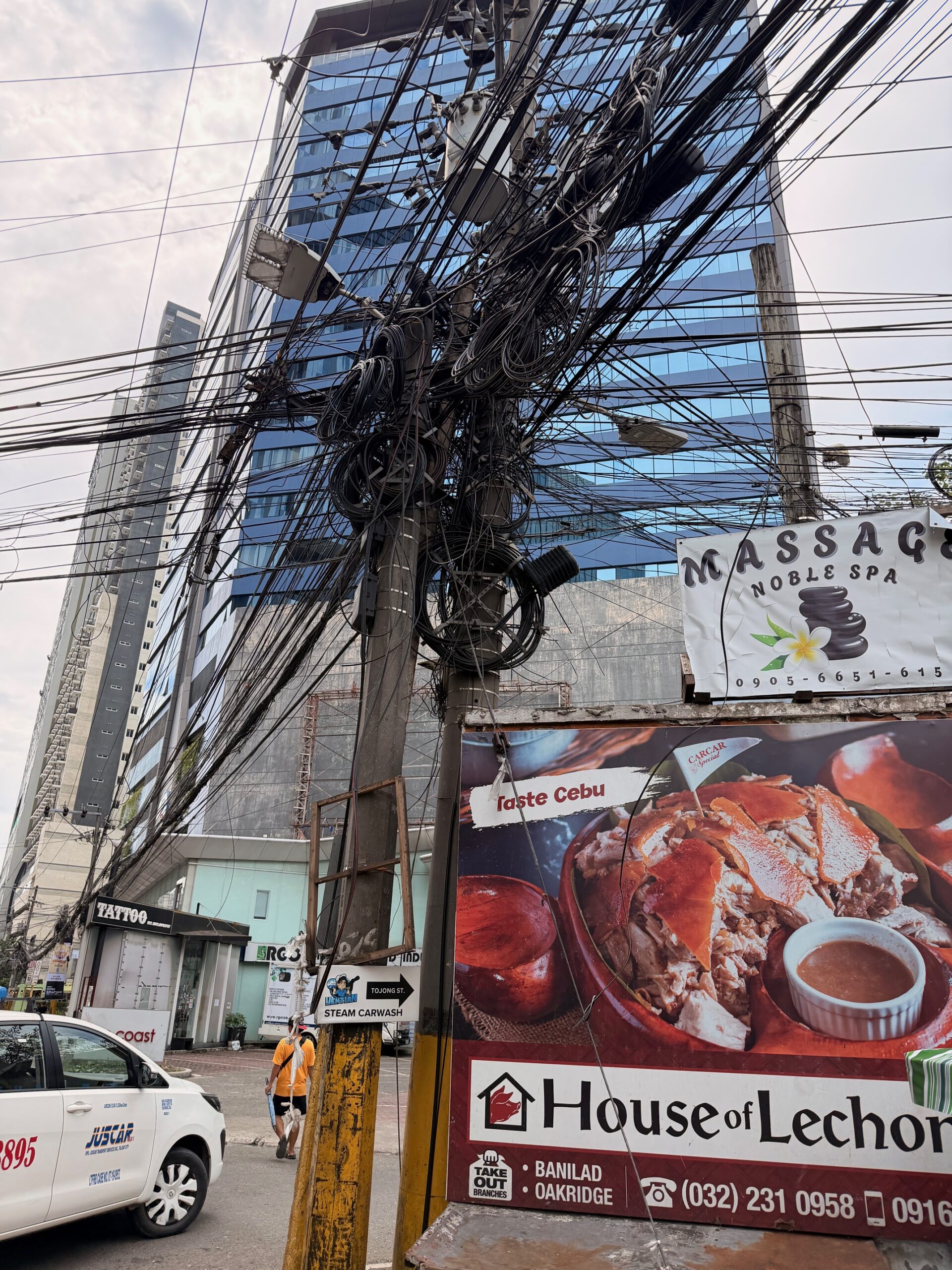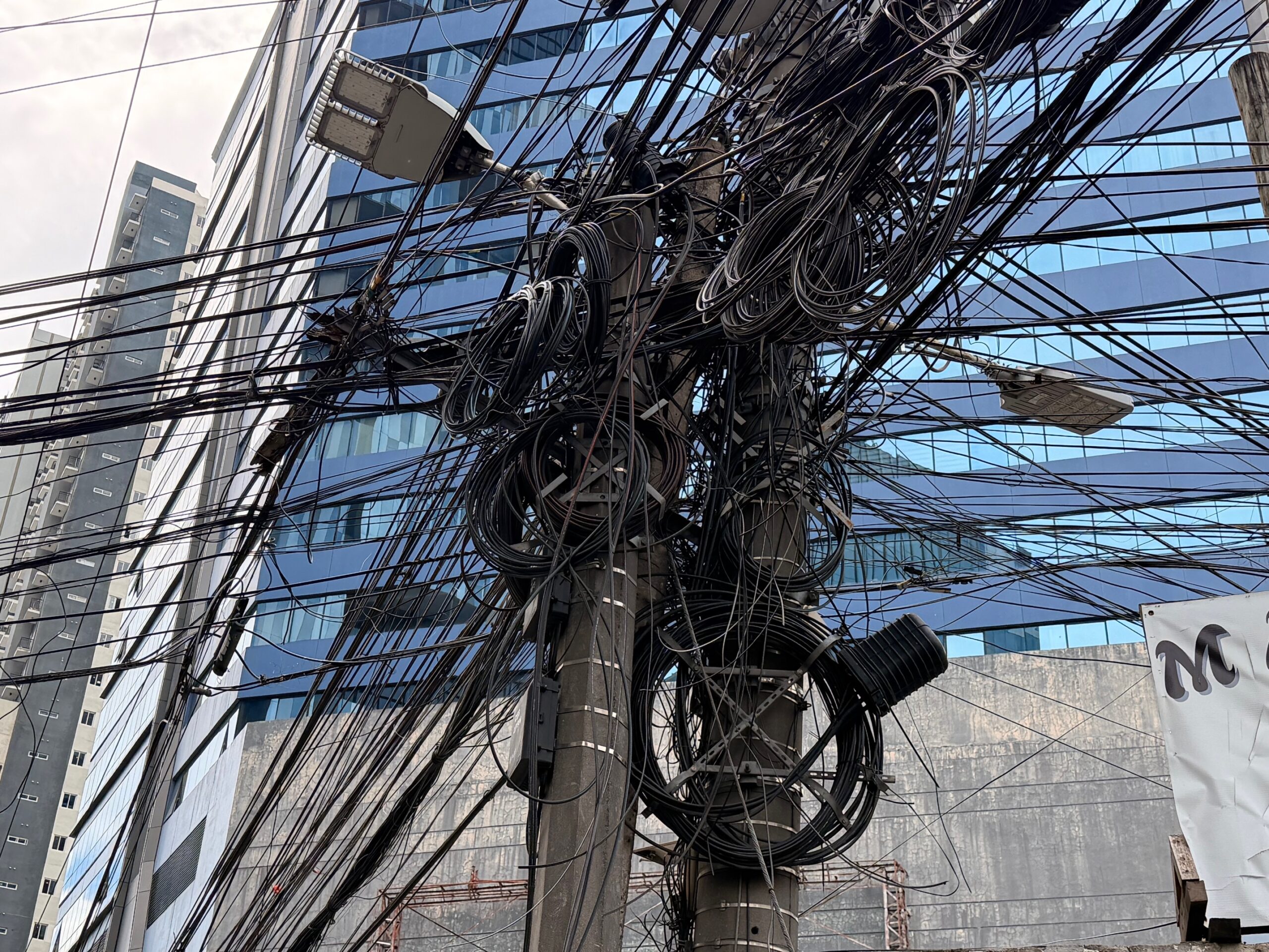 You have to be very careful walking around in the Philippines. The infrastructure is not up to par. Uneven sidewalks, metal rebars sticking up, potholes, and not a safe place to walk. Check out the electrical wires? OMG!