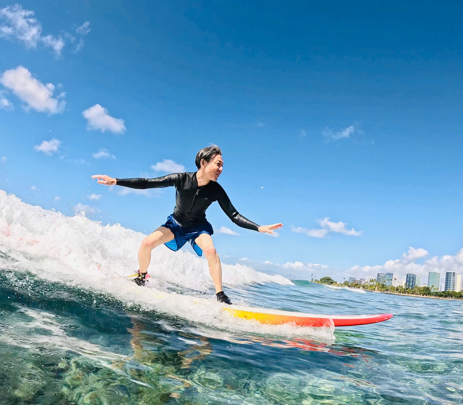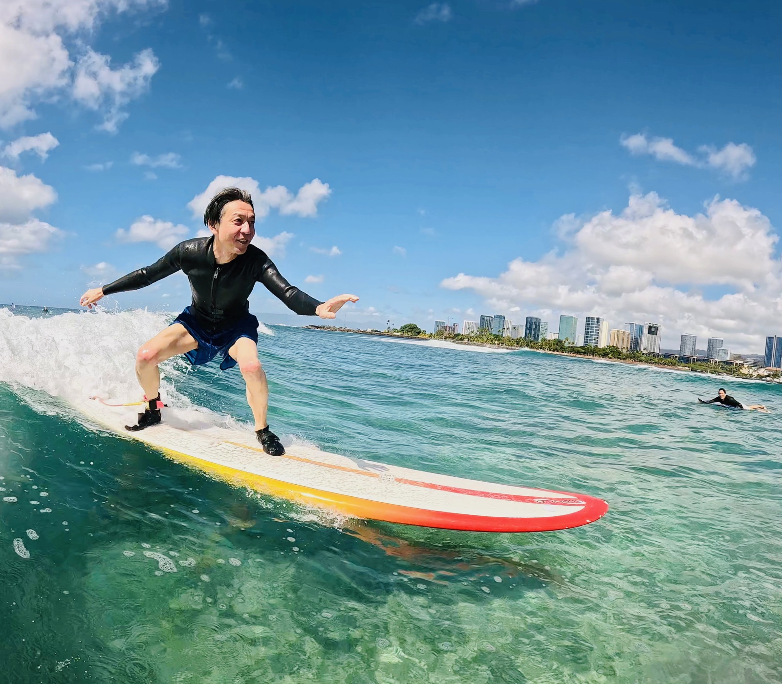 Look how clean the water is. And look how happy Kinoshita-san is. This is what you call “stoked.”