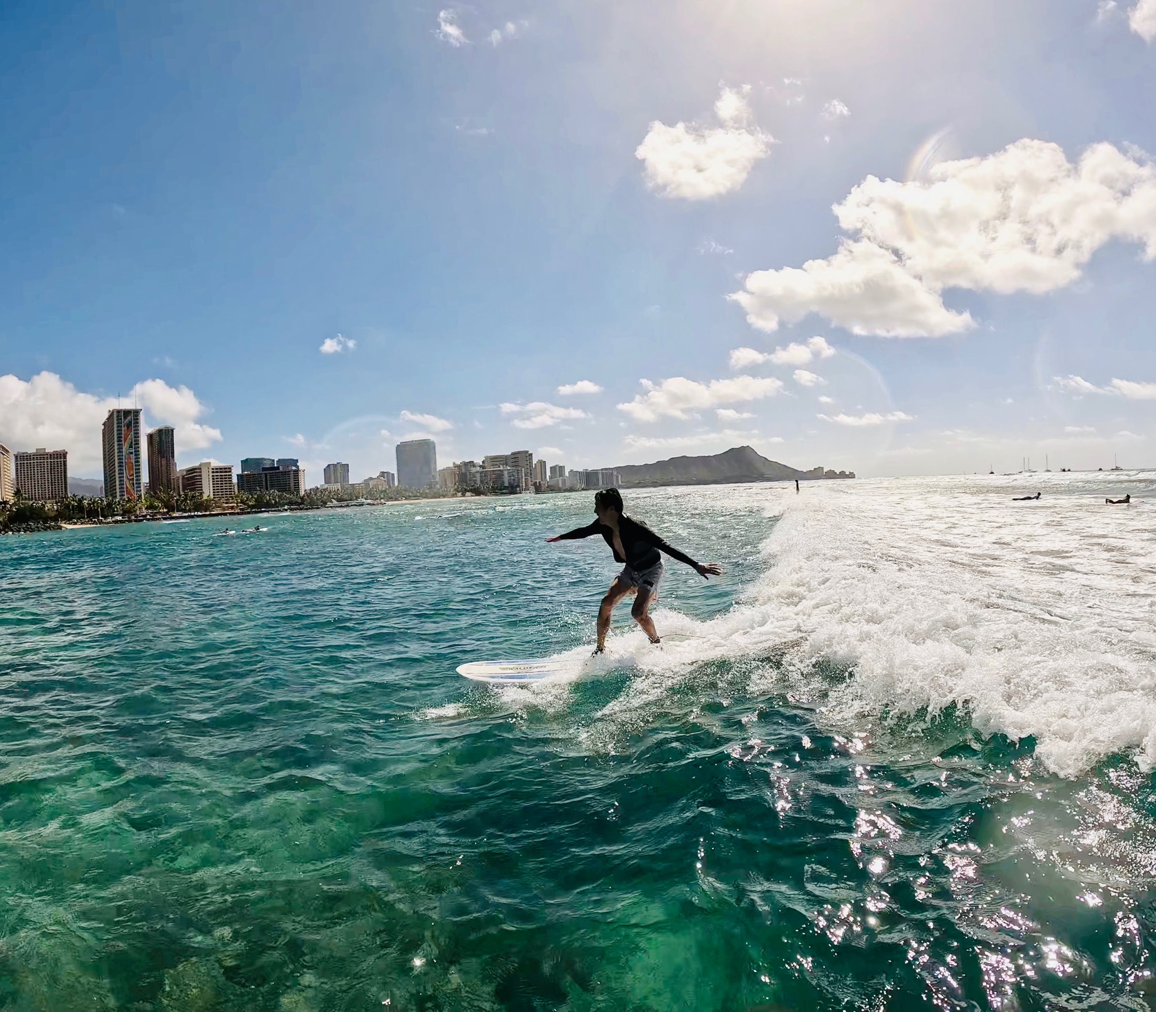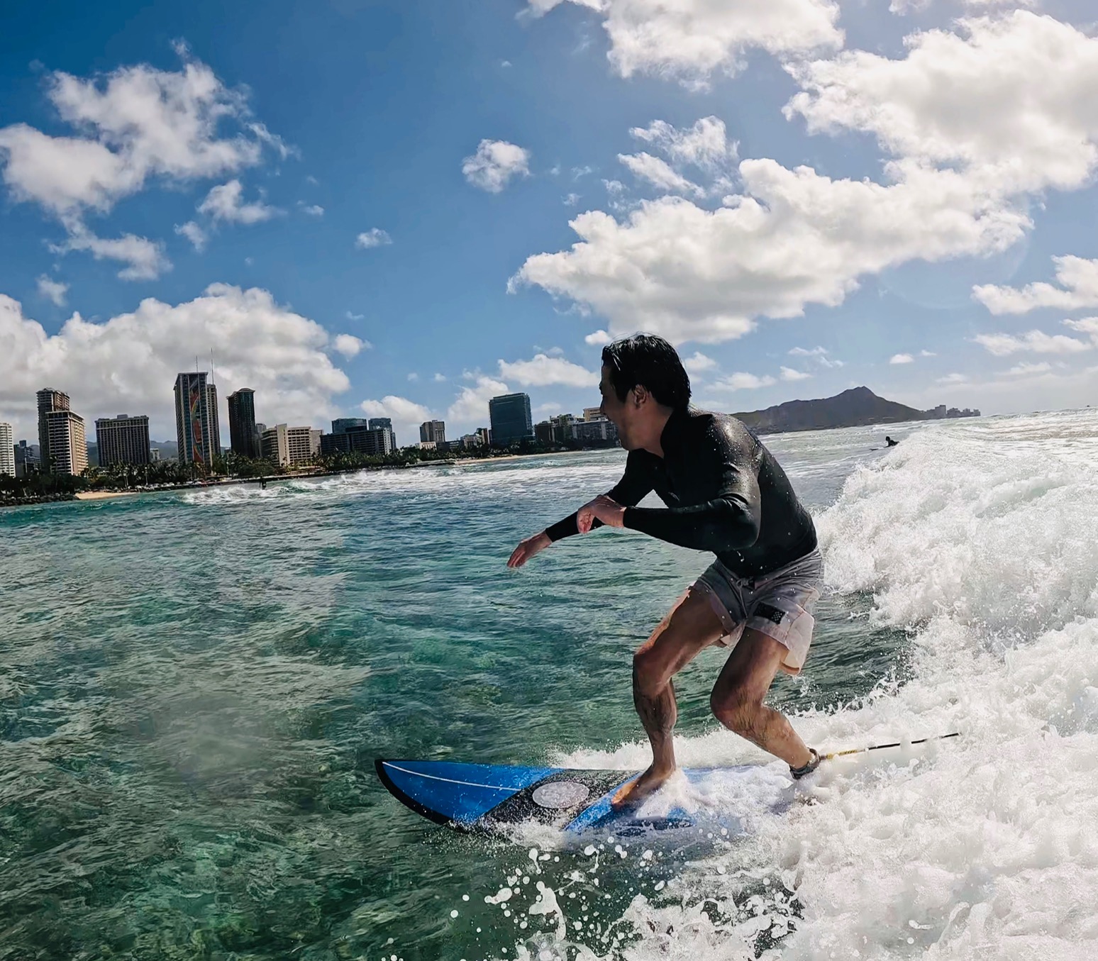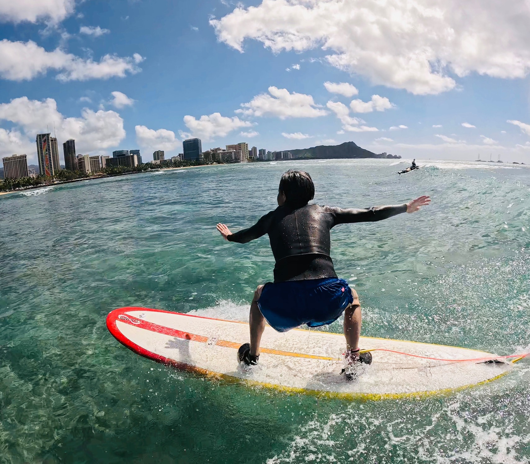 Isobe-san has been surfing for a long time. Really good balance and really strong at paddling.