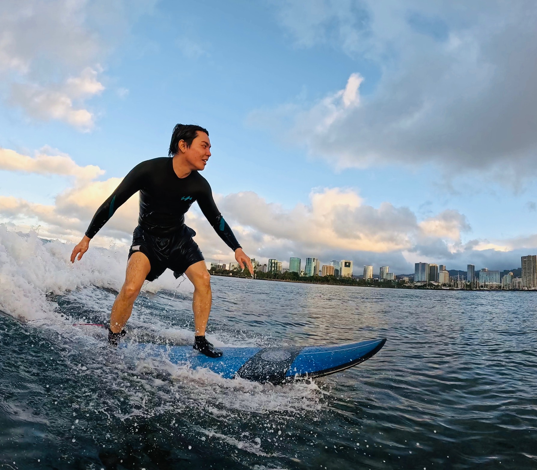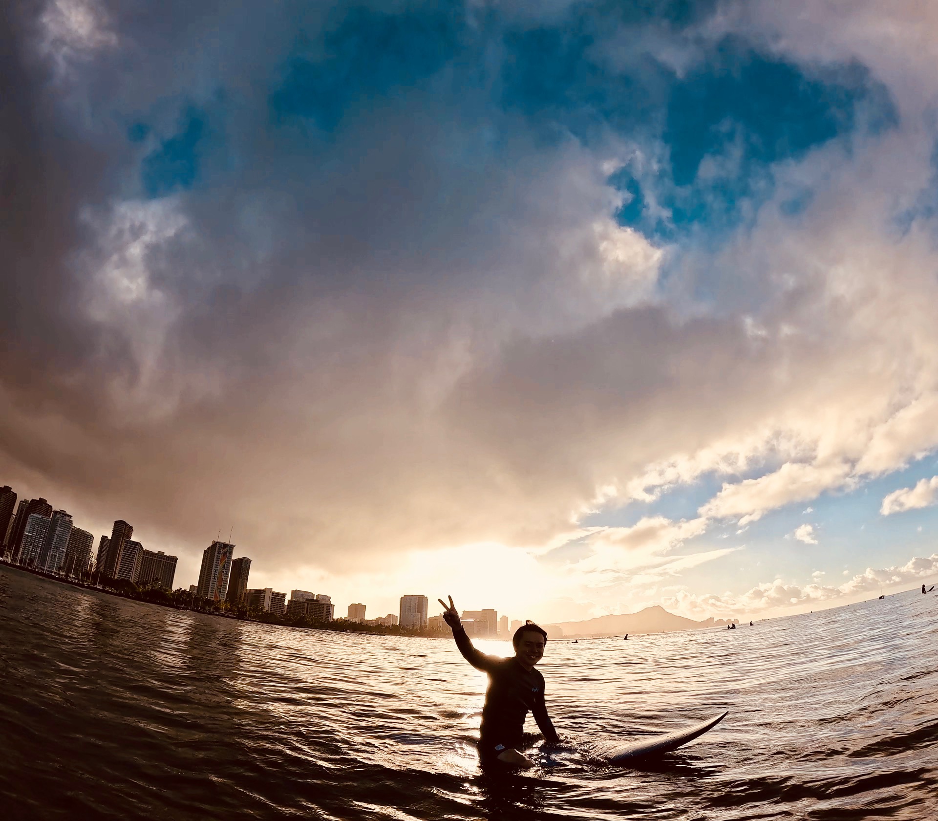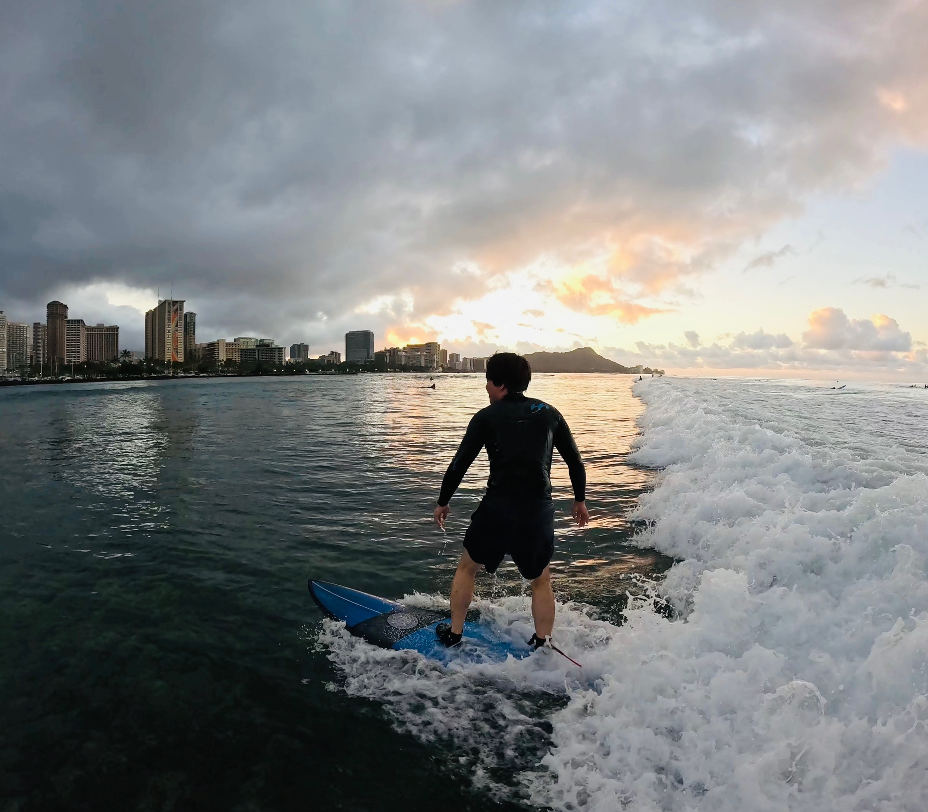 And the sunrise was amazing. First time surfing in Hawaii and you get to see this. Minami-san was stoked!