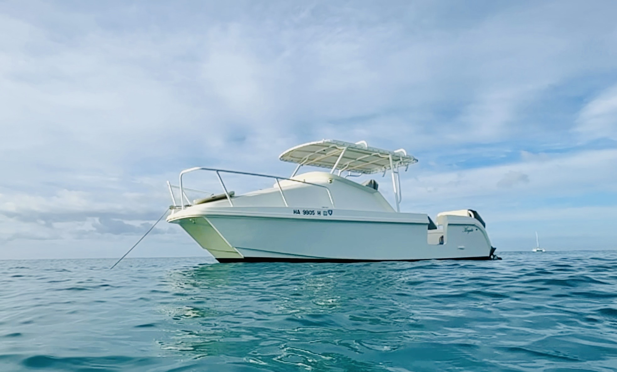 Another beautiful morning in Hawaii. Spent the entire morning taking care of Mayuki. Scrubbing the bottom, washing the side, cleaning the motors, and making her shine. I was scrubbing the bottom and every time I looked up, this is what I saw. Pretty amazing.