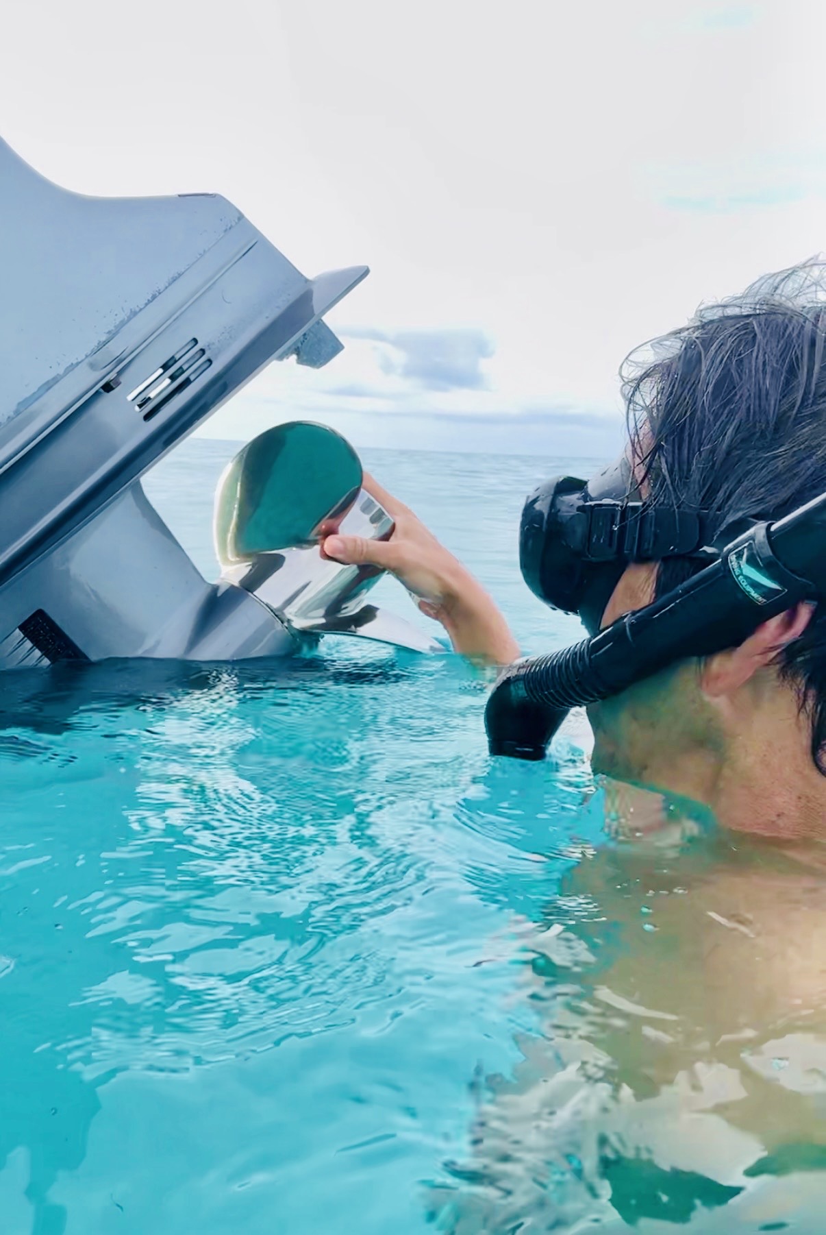 I’m working on how to change the propeller in the ocean. I think I figured out a way. I just hope I don’t drop anything because it will be gone forever. A new propeller means faster speeds and cheaper on gas. Can’t wait for that!