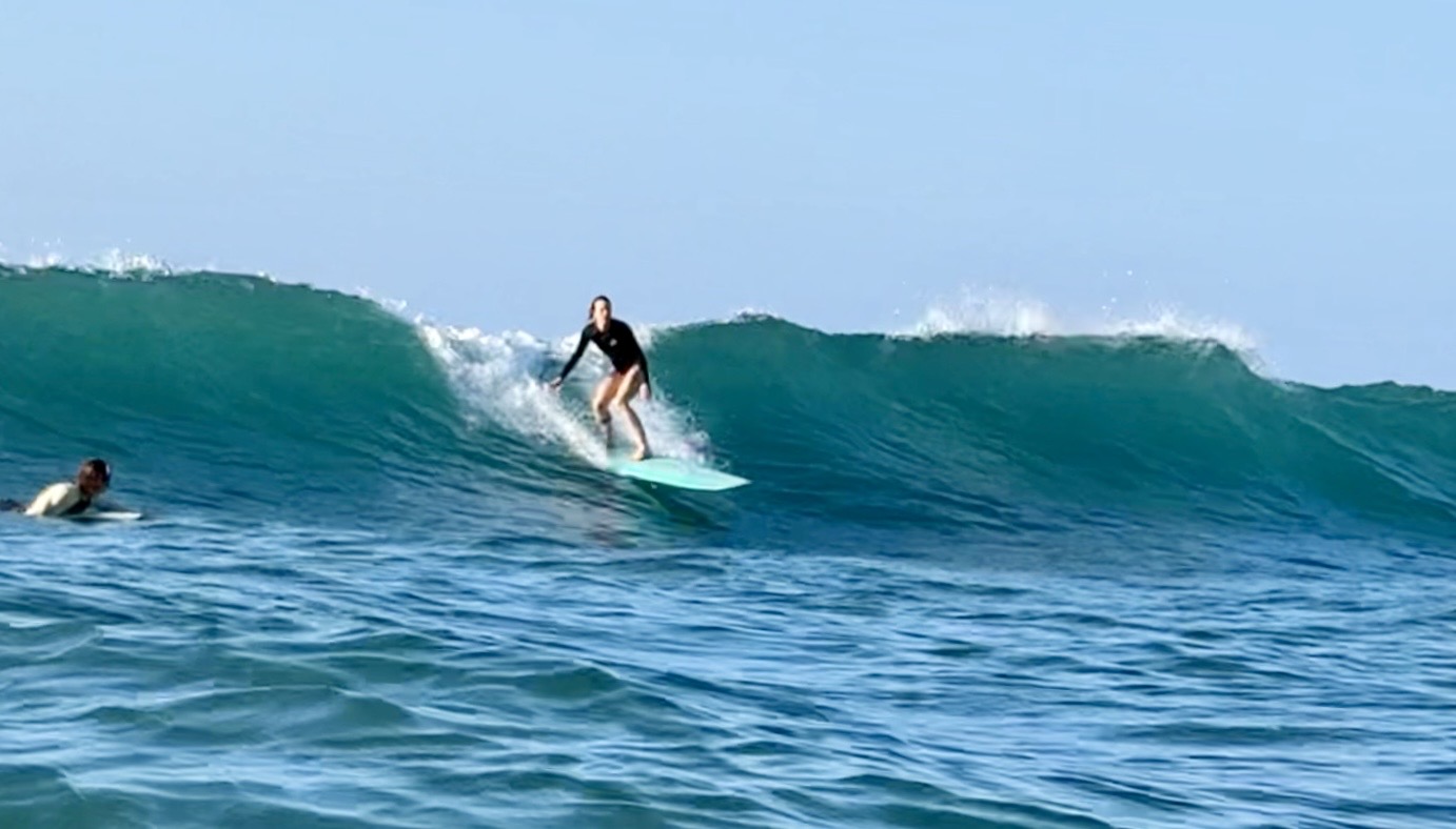 And it got better and better by the hour. I rode a bigger board and sat on the outside catching the sets. Not too many surfers out today as this girl got a good one.