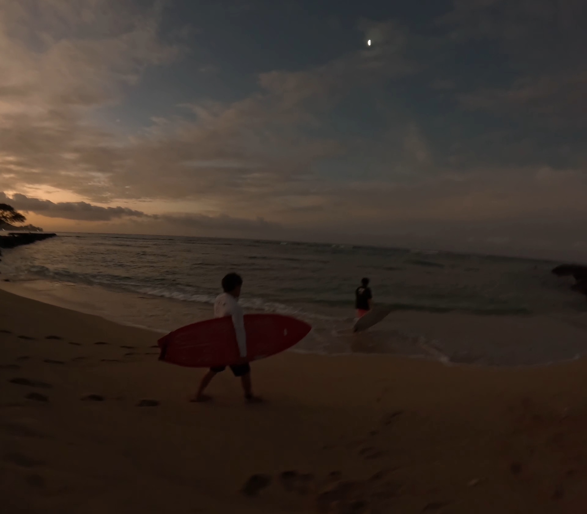 Surfing with the moon and sunrise. So stoked to surf with the boys.