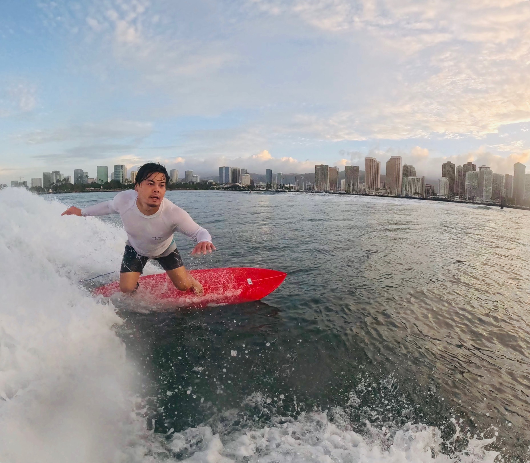 Nakamura-san surfing so much better. Putting the board on the rail and riding the wave forever.